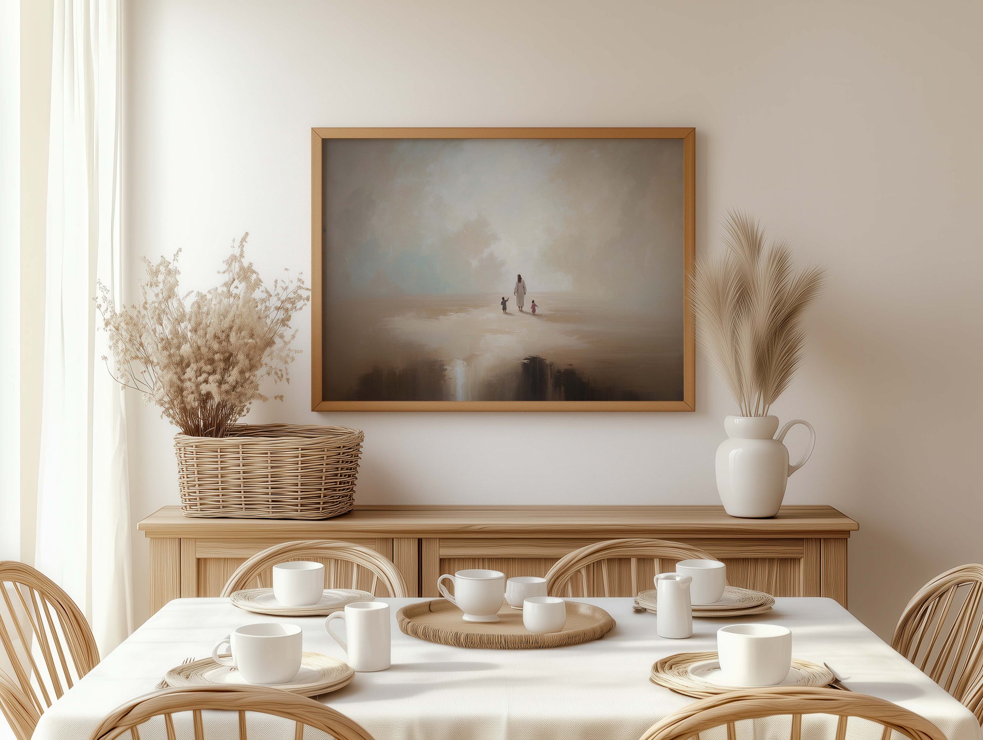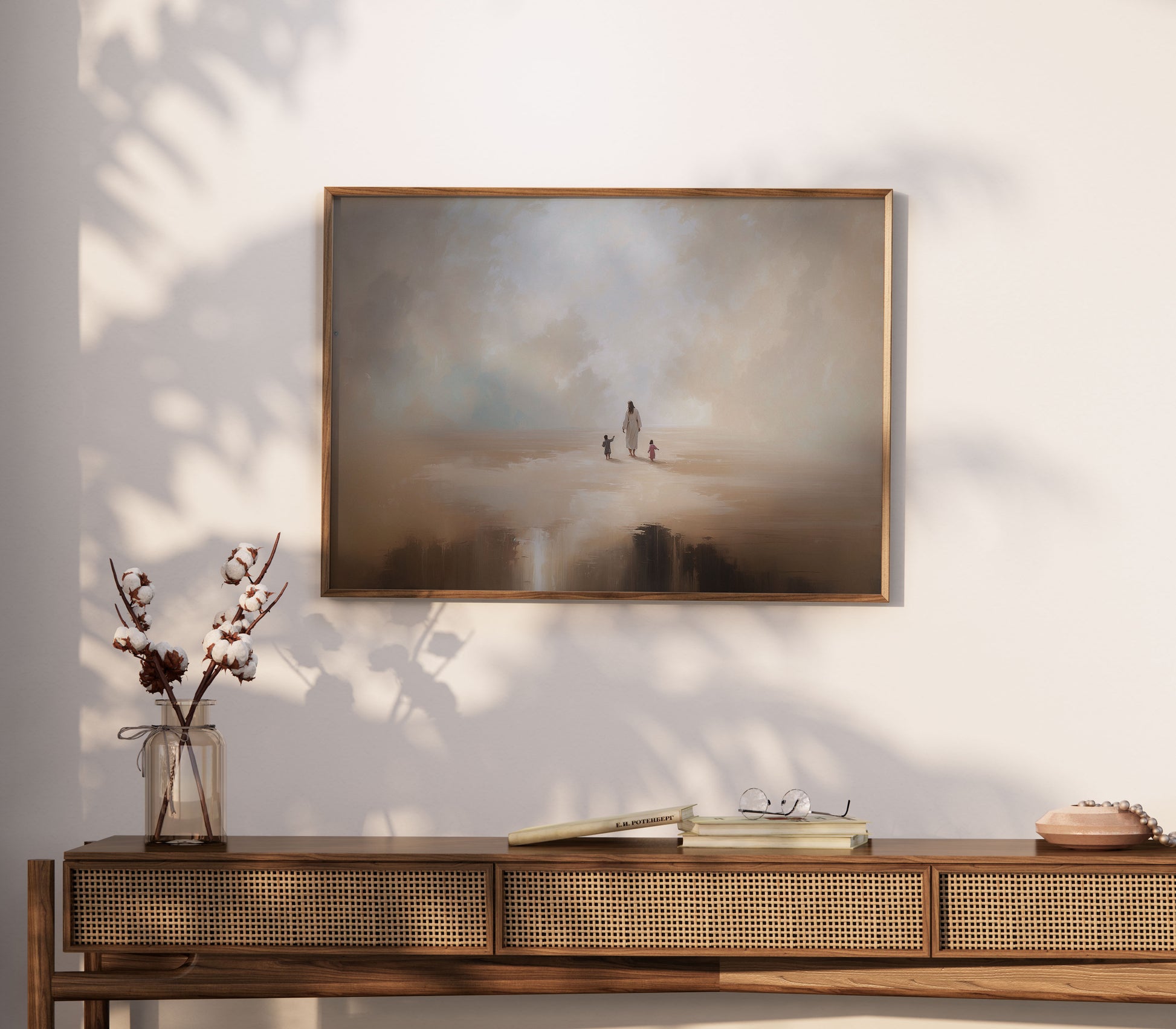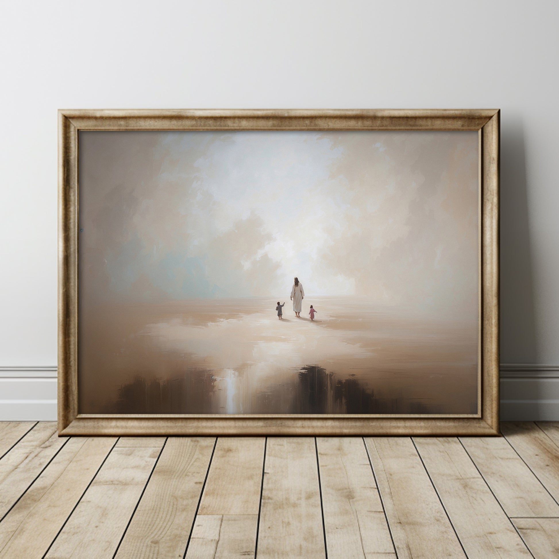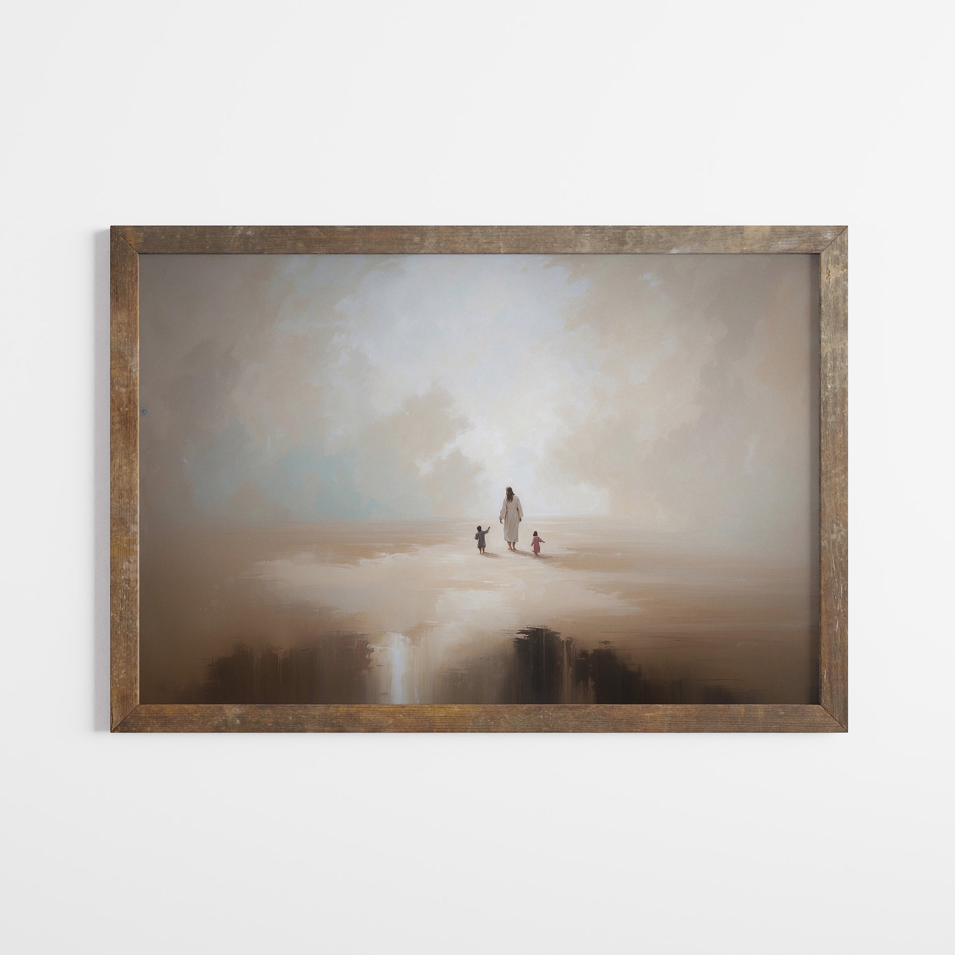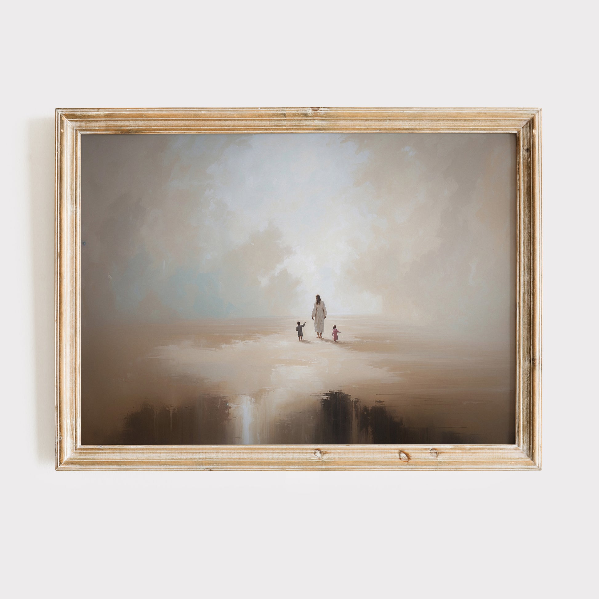 Poster, Barnen följer Jesus, Modern Kristen Oljemålning.