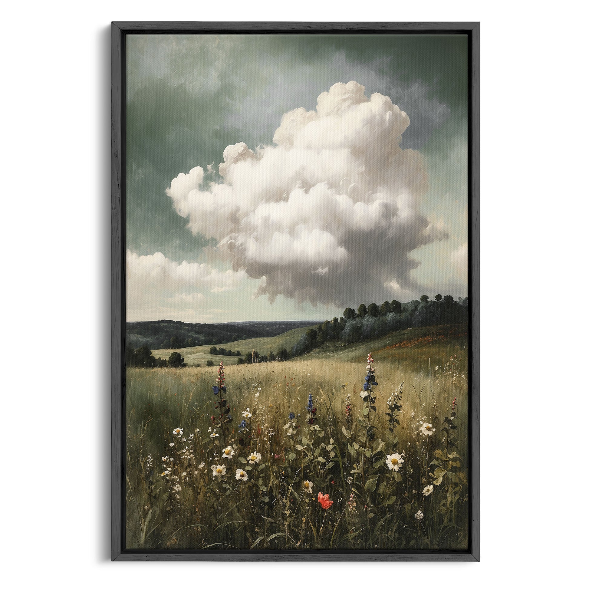 Exklusiv inramad canvastavla i stort format. Landskapsmotiv med fluffigt moln.