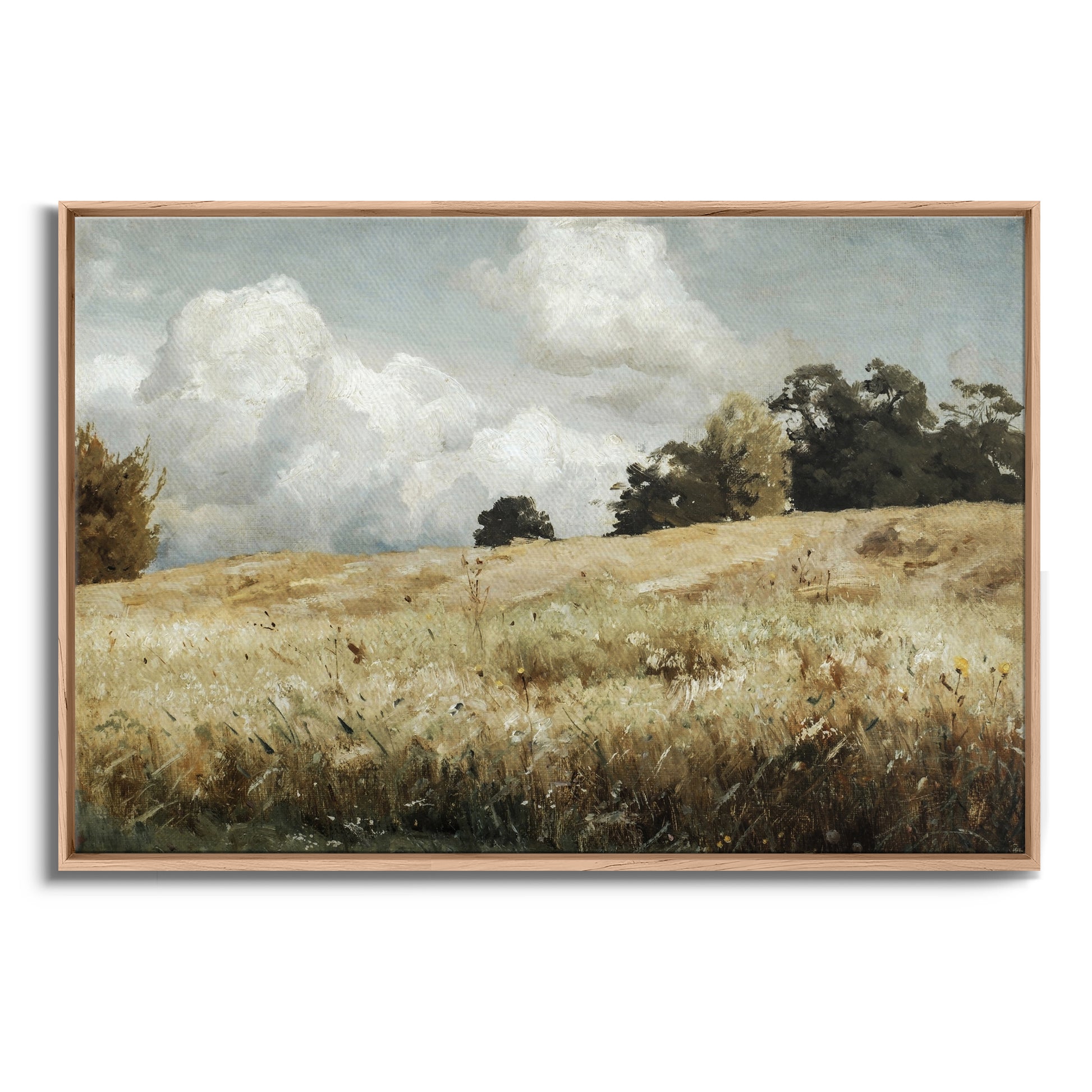 Exklusiv inramad canvastalva i stort format. Vetefält oljemålning.