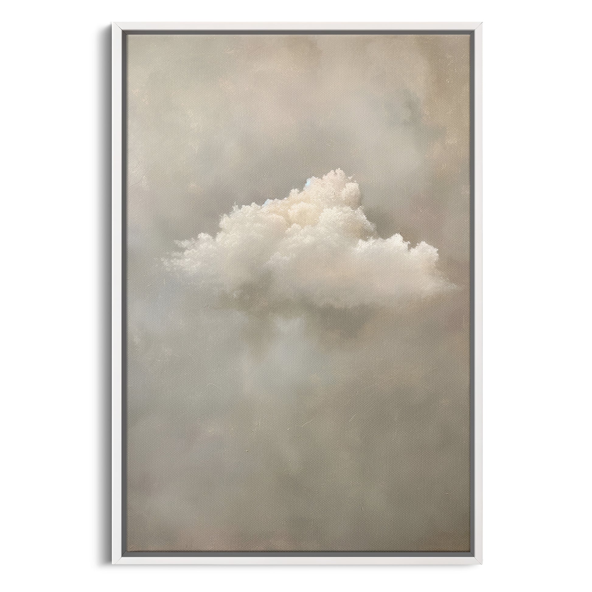 Exklusiv inramad canvastavla i stort format. Fluffigt moln på beige bakgrund.