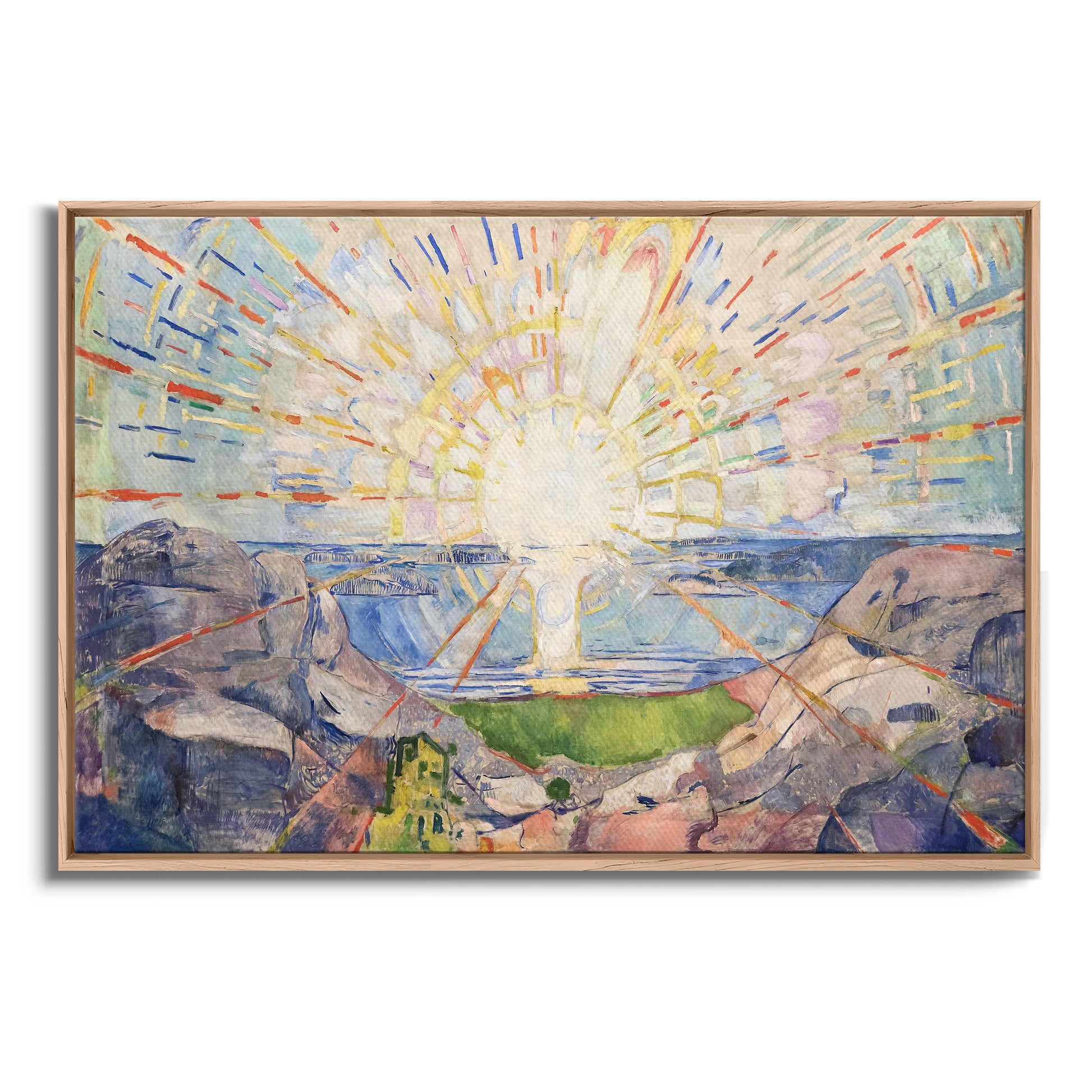 Exklusiv inramad canvastavla i stort format. Soluppgång av Edvard Munch.