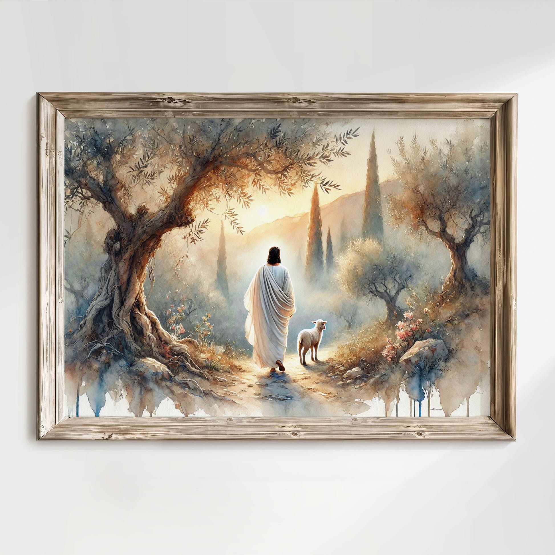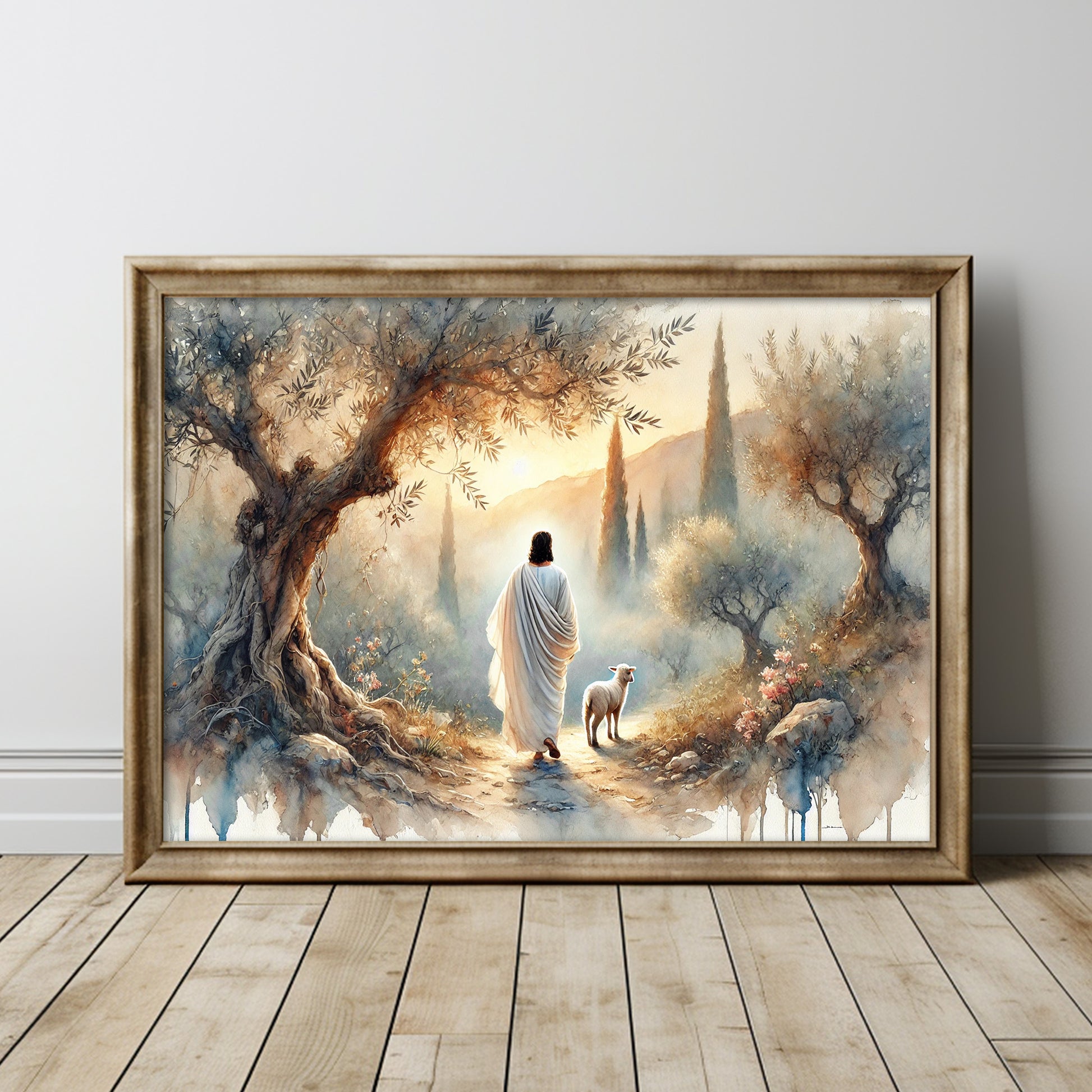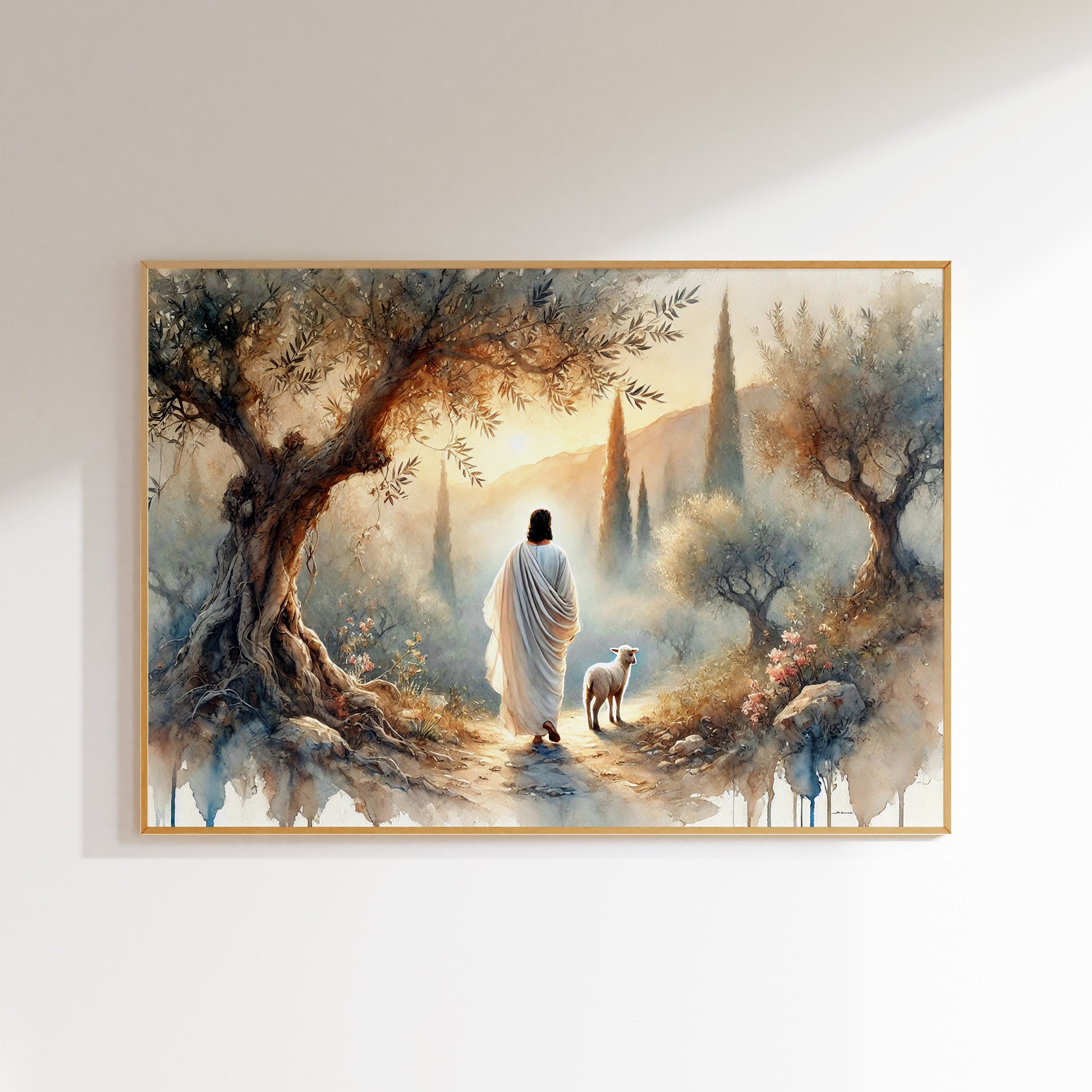 Jesus poster, herren är min herde, målning i vattenfärger.