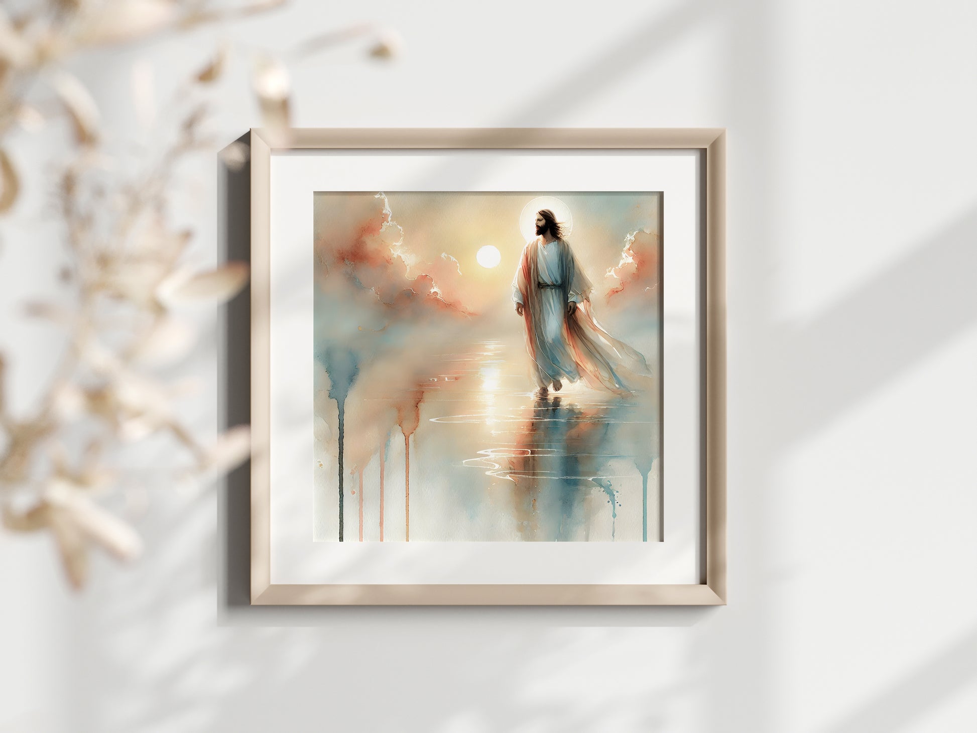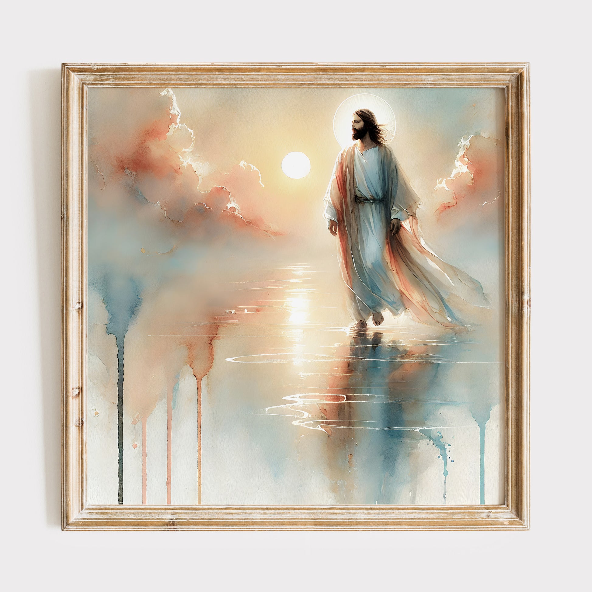 Jesus går på vattnet, målning i vattenfärger.