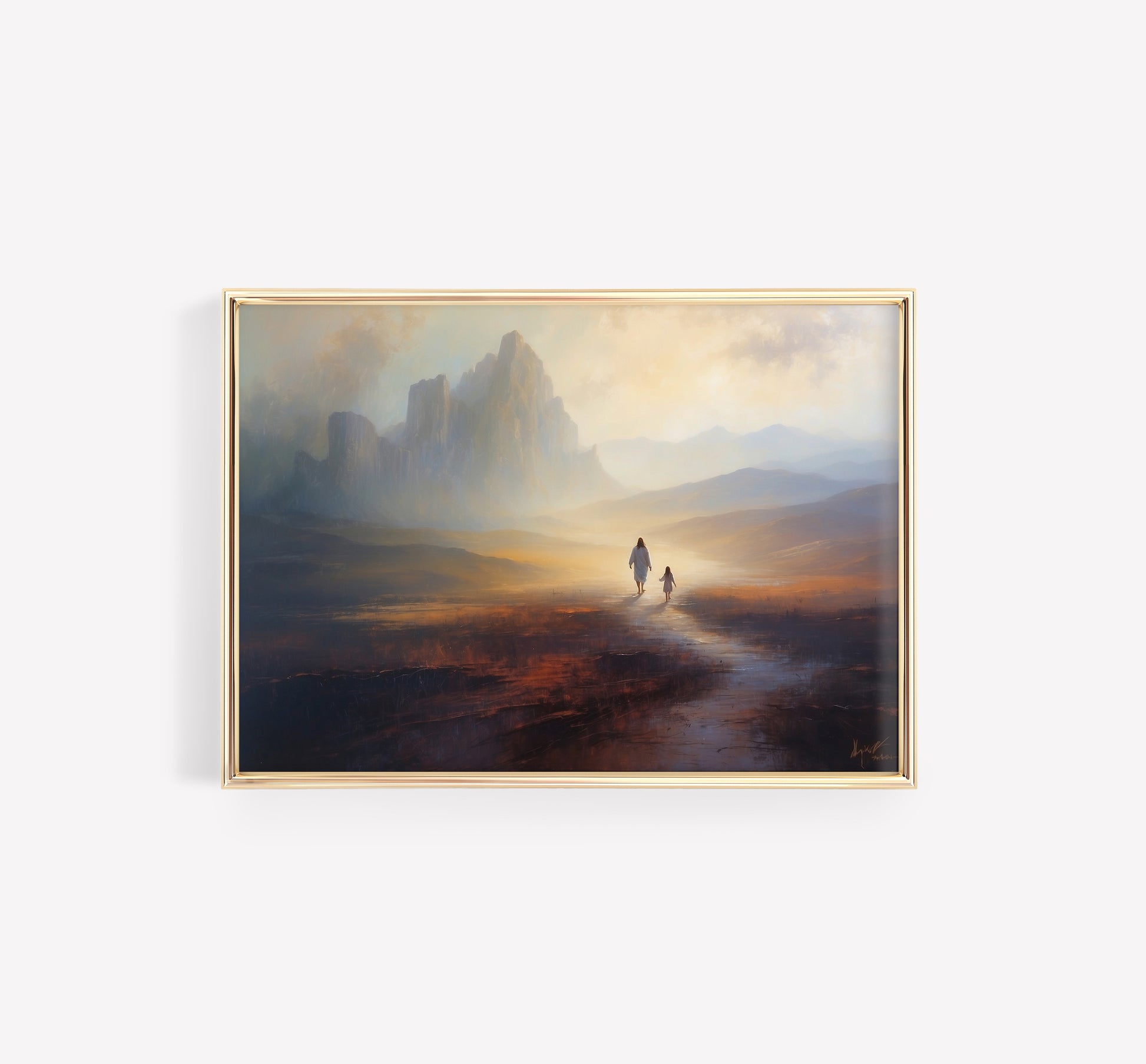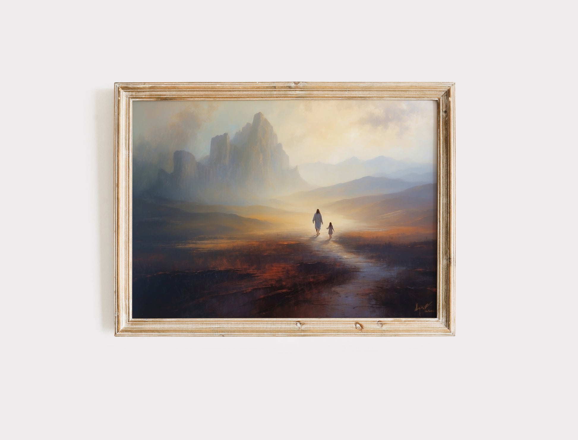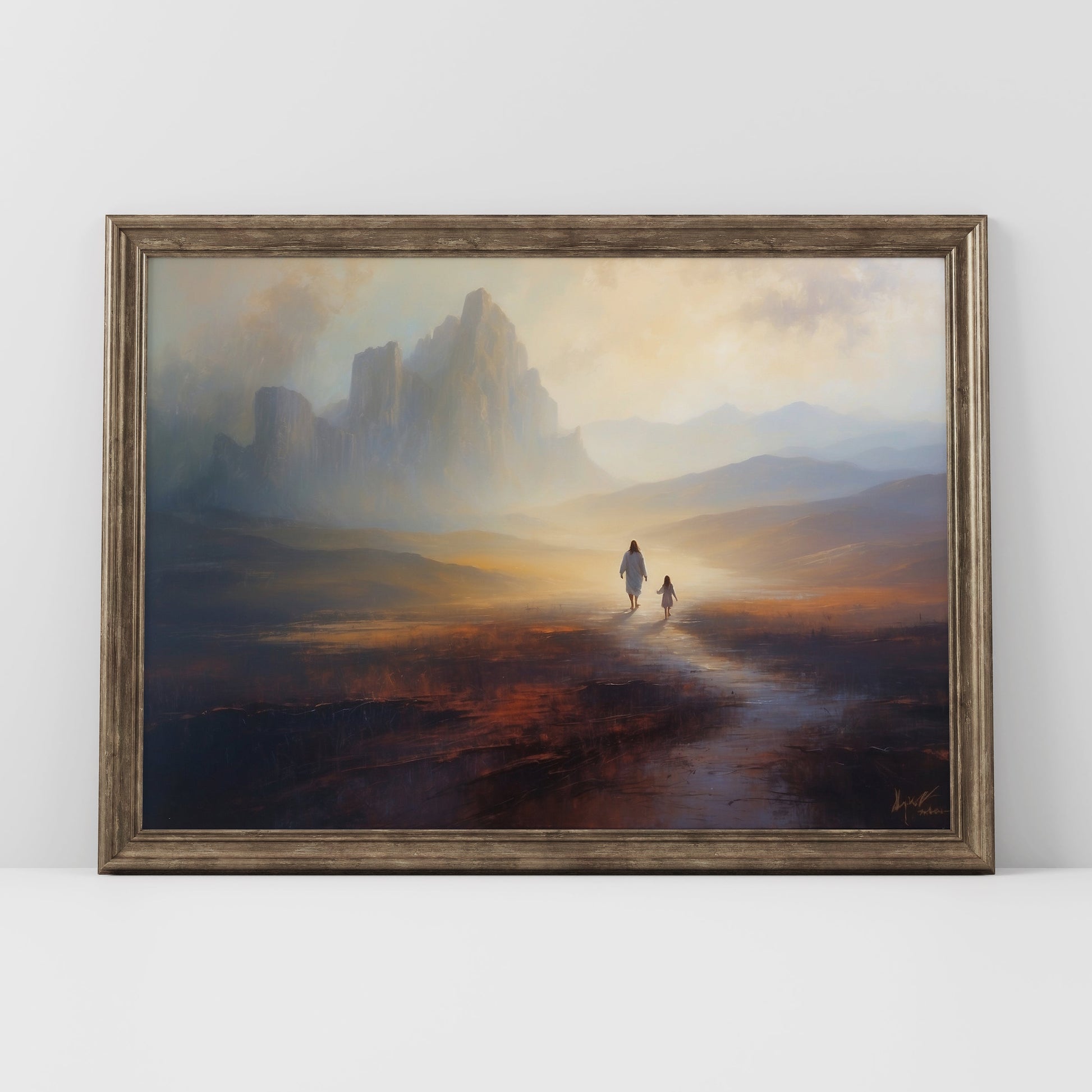 Jesus och liten flicka oljemålning.