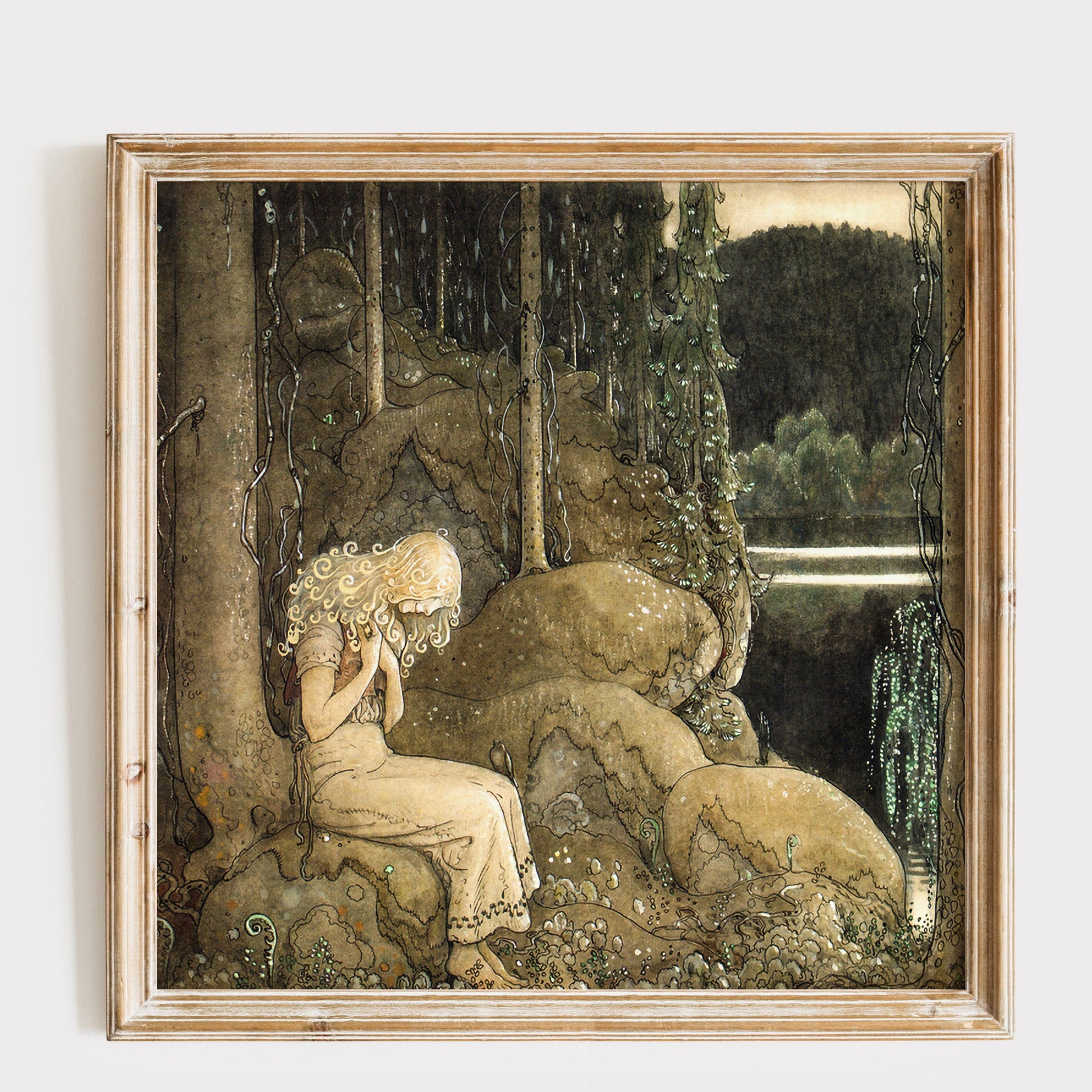 Klassisk John Bauer poster, Prinsessa i trollskogen.