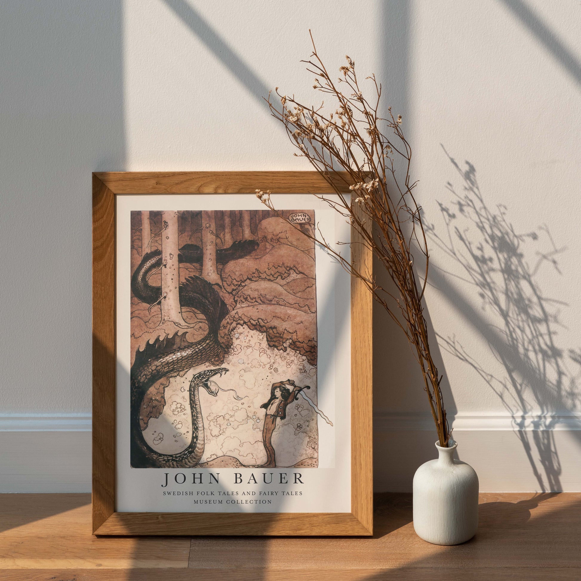 Klassisk John Bauer poster, pojke och orm.