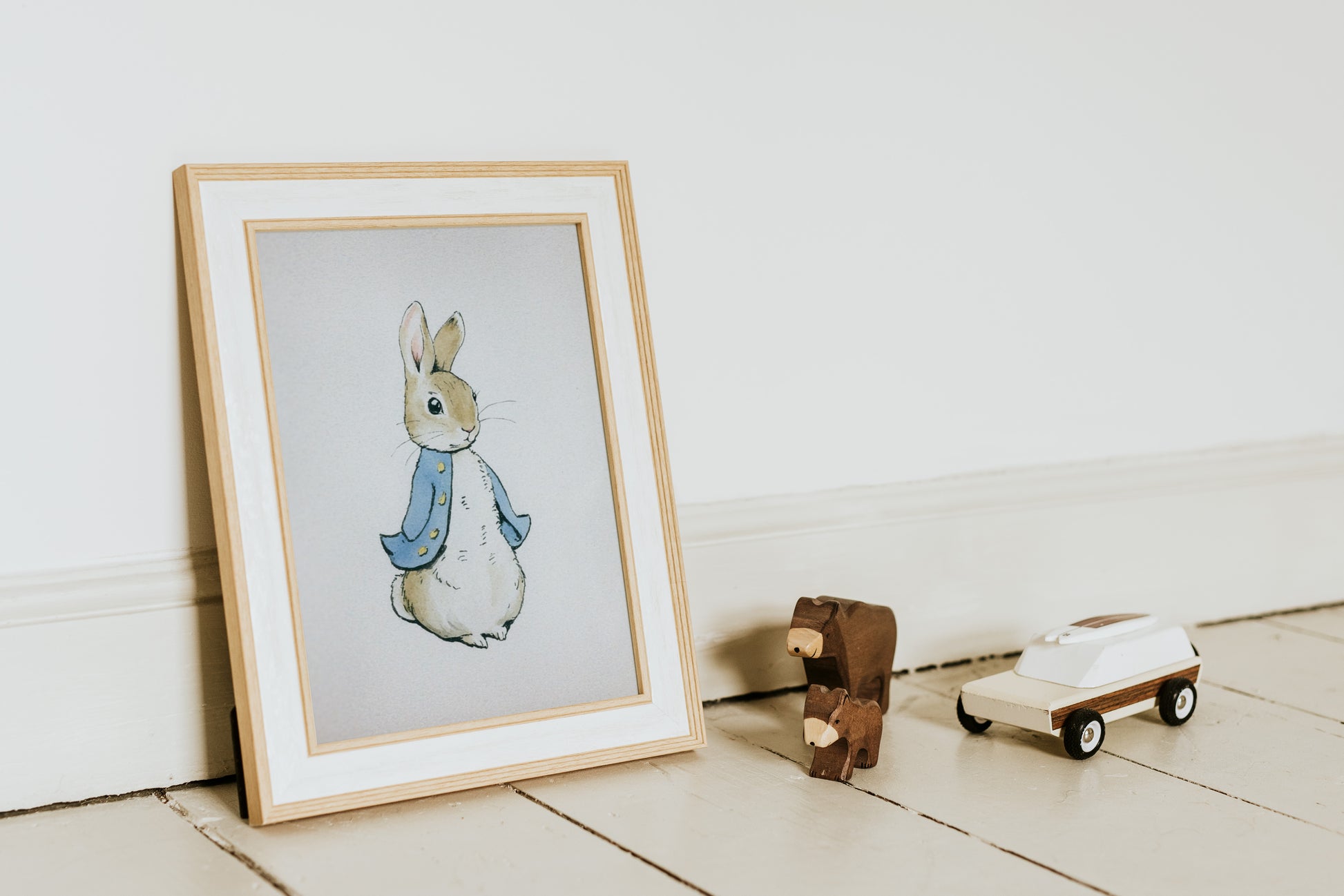 Klassisk Beatrix Potter "Peter Rabbit" illustration för barnrummet.