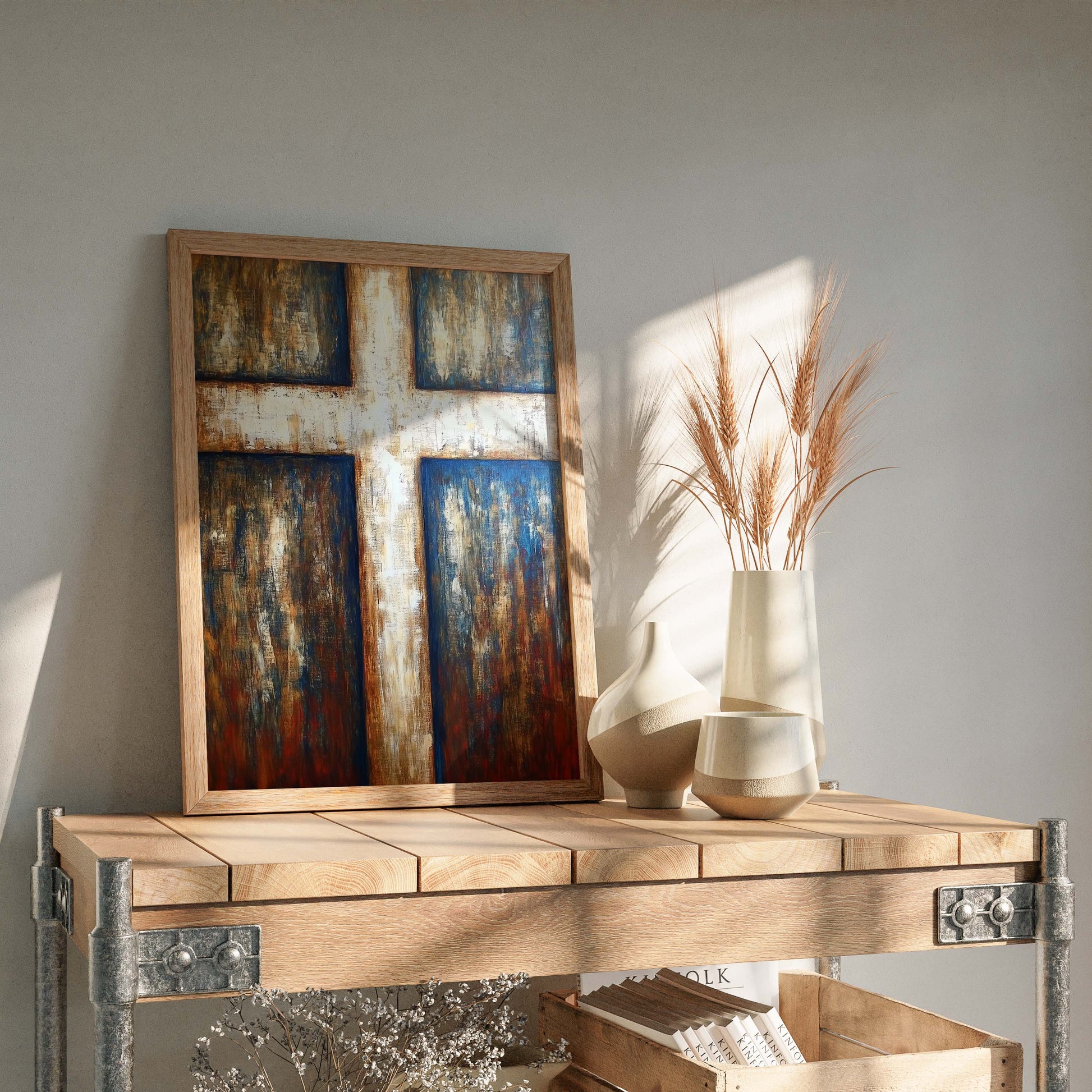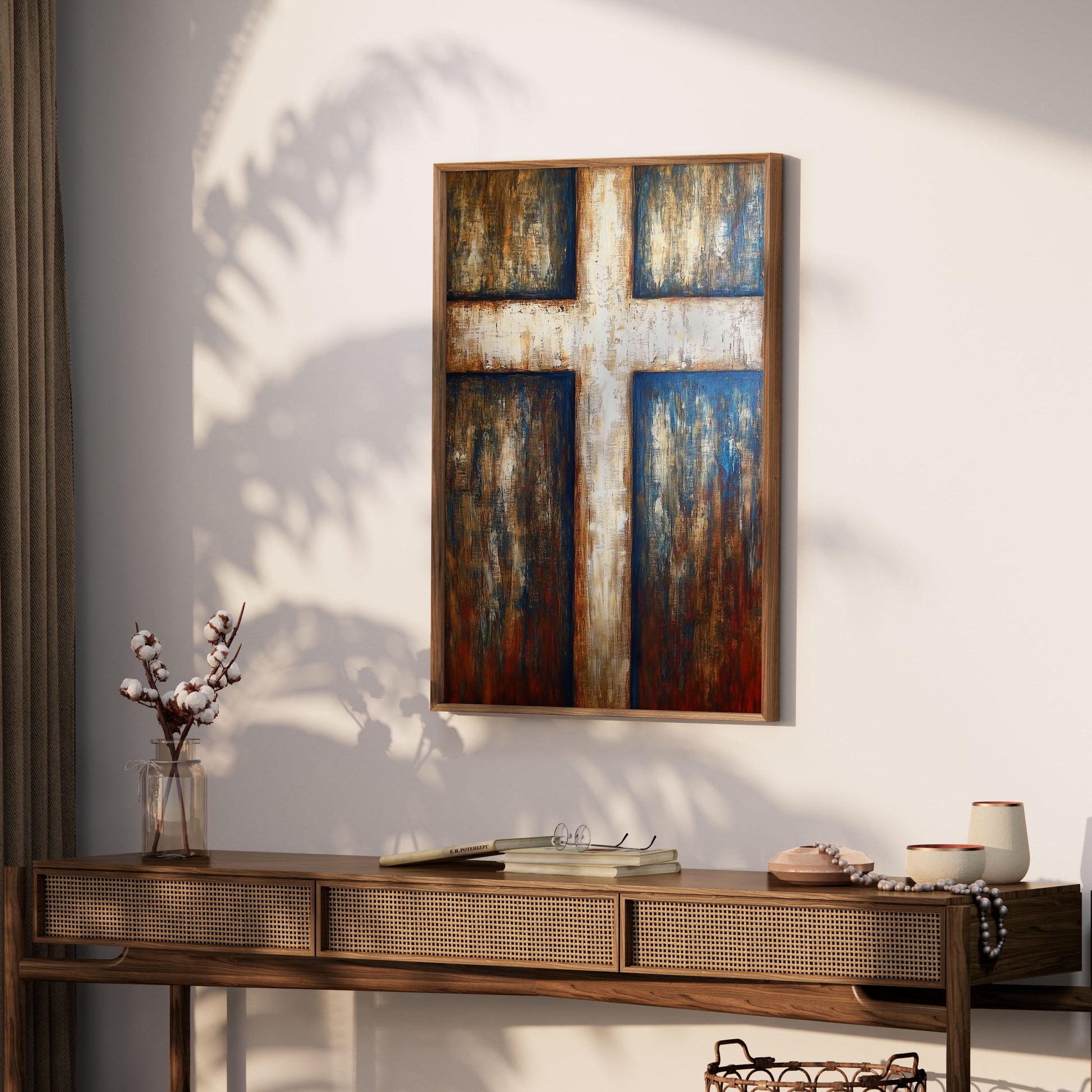 Kristen konst, kors oljemålning i modern stil.
