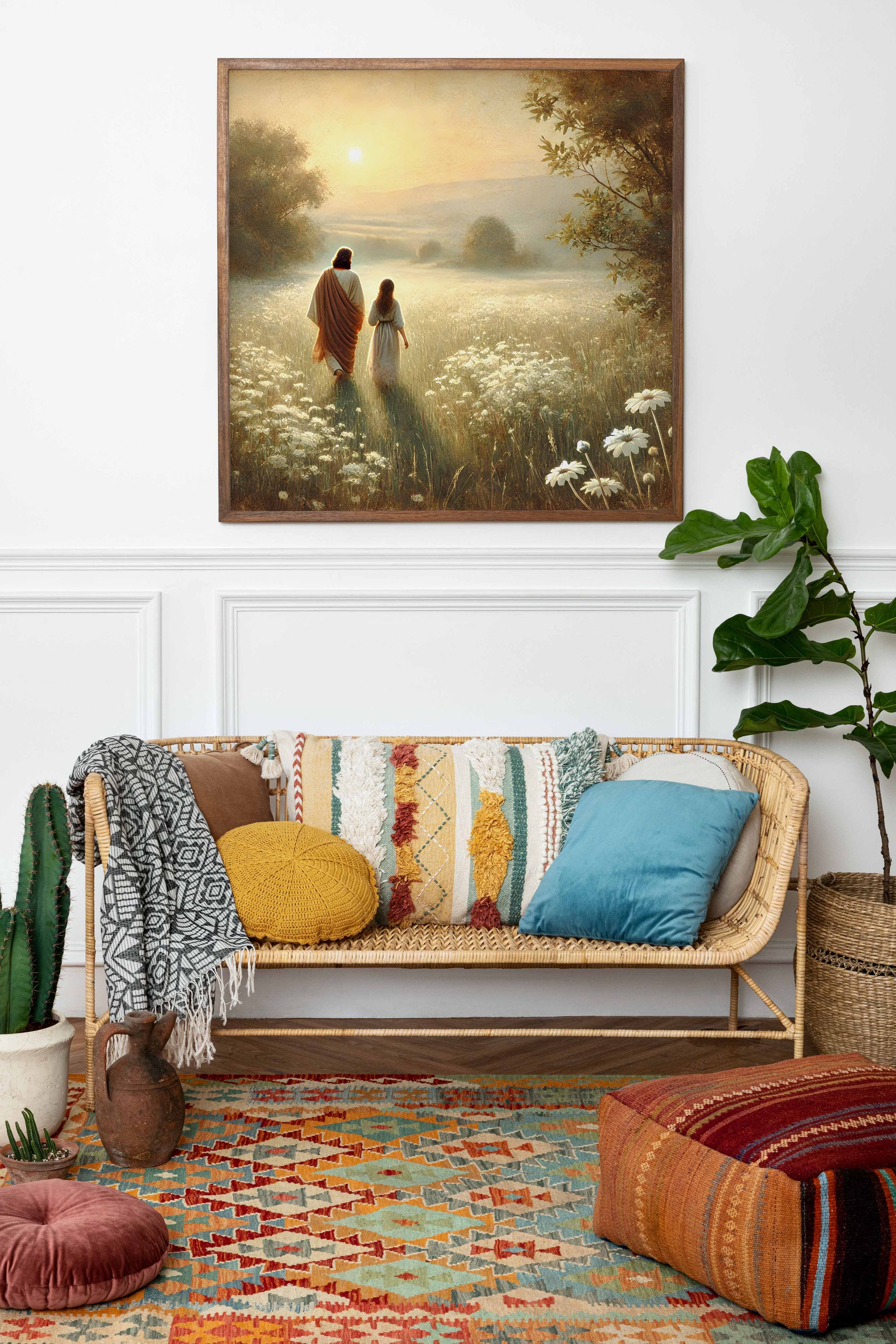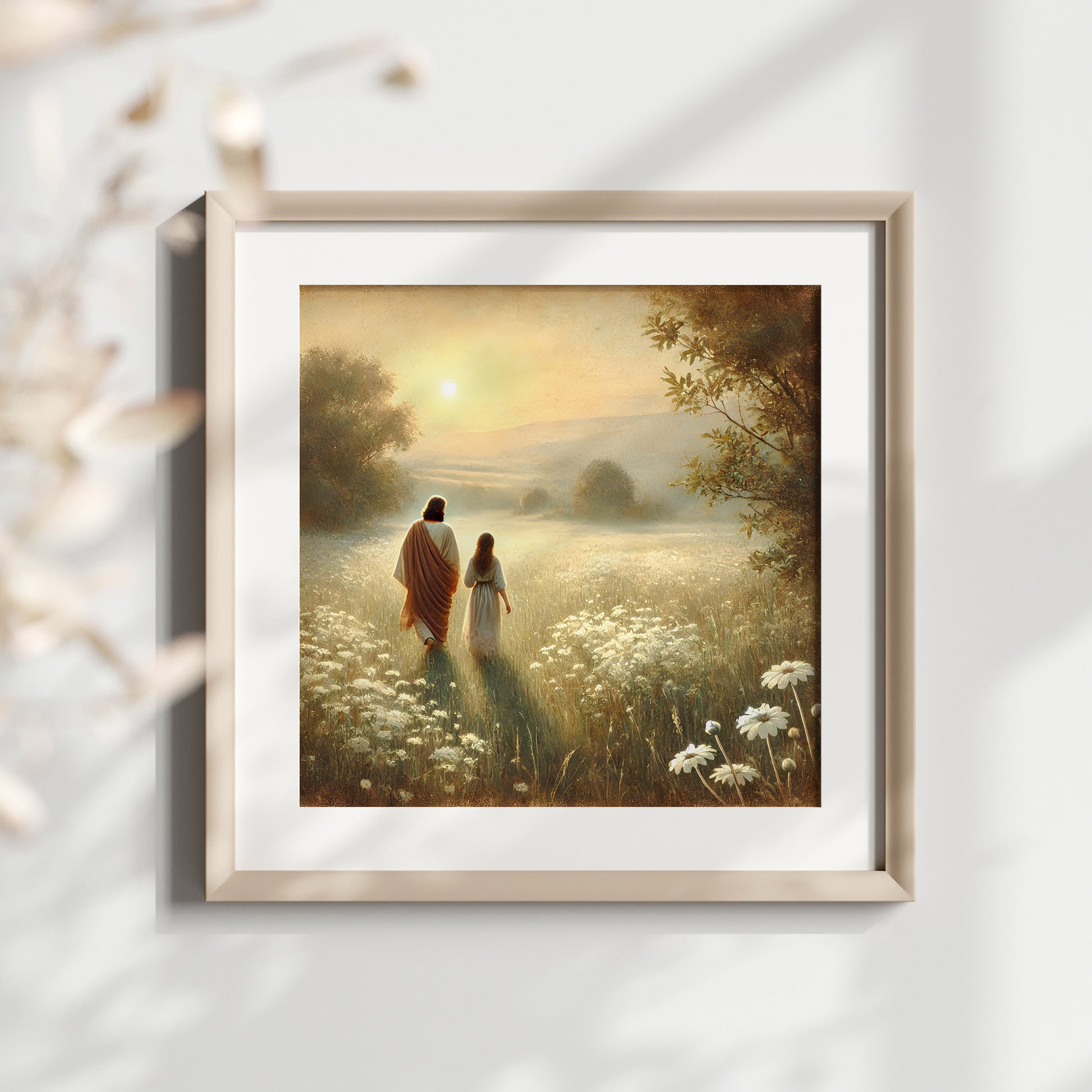 Kristen konst. Jesus vandrar mot på sommaräng, poster.