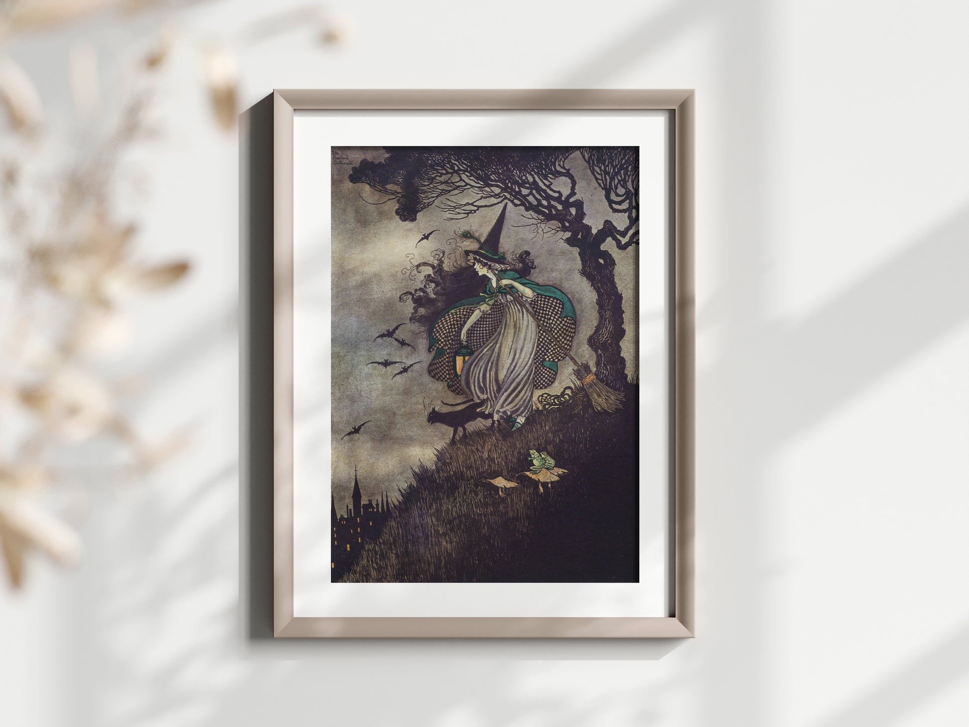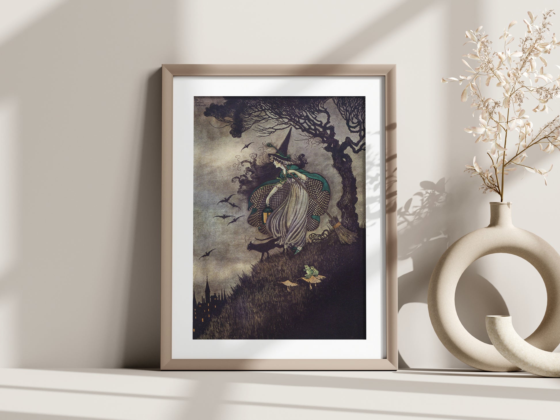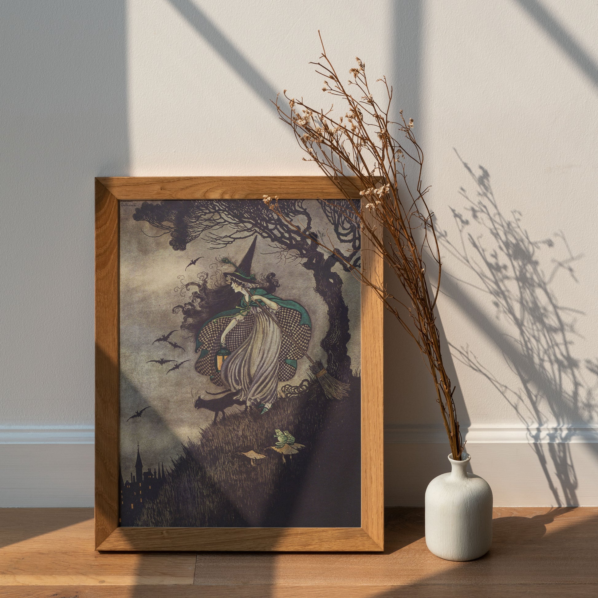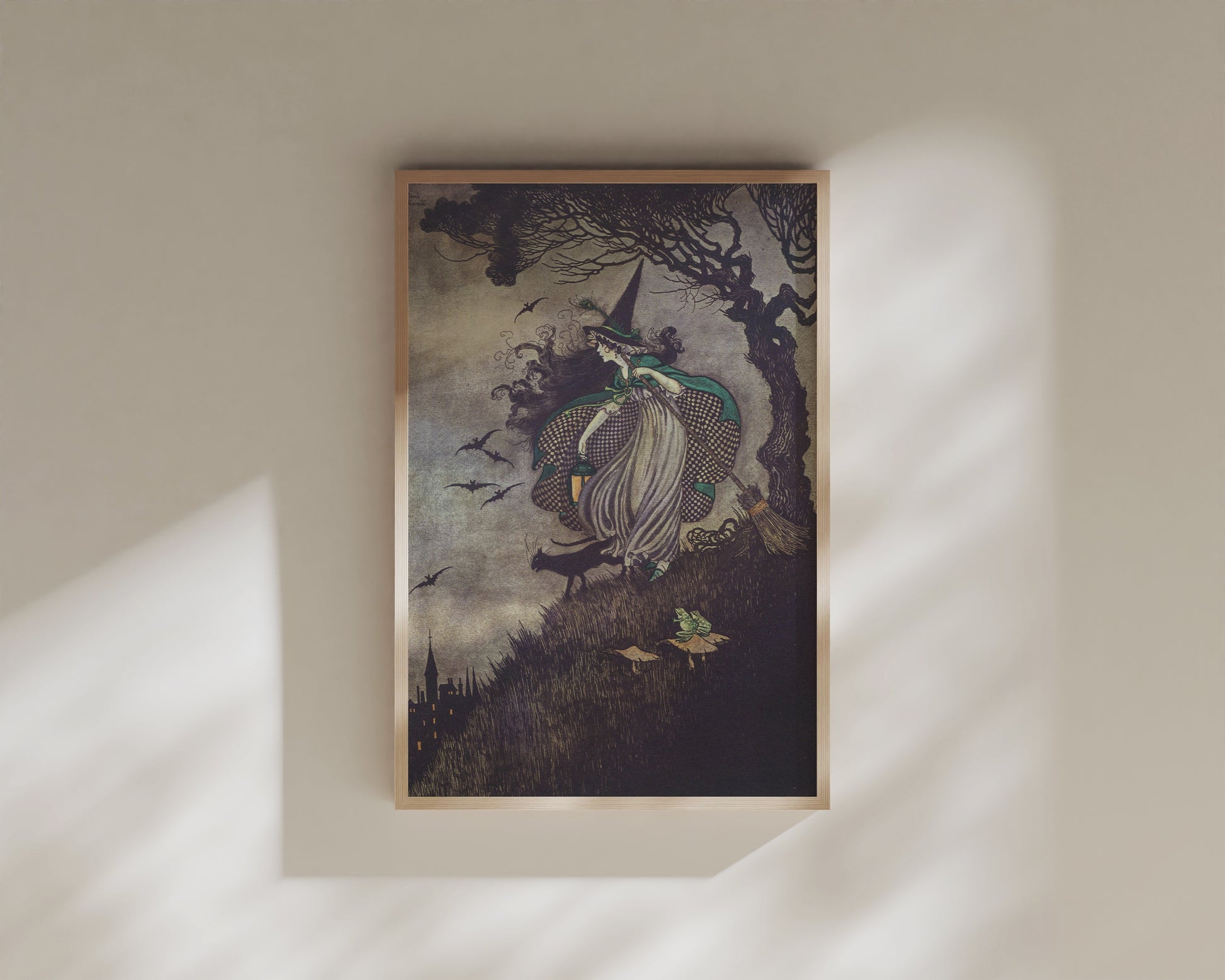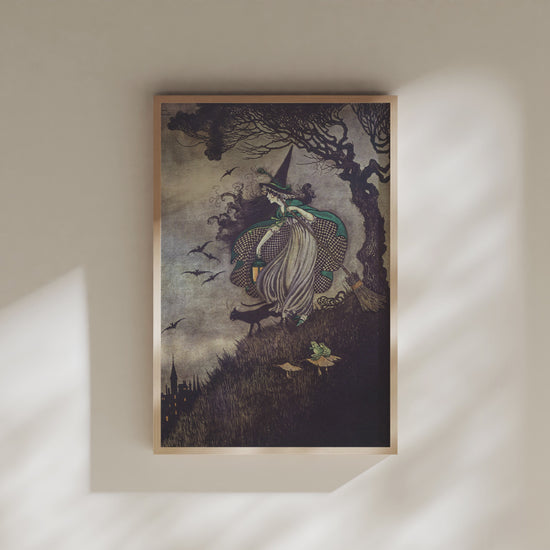 Poster, vintage illustration av häxa och katter.