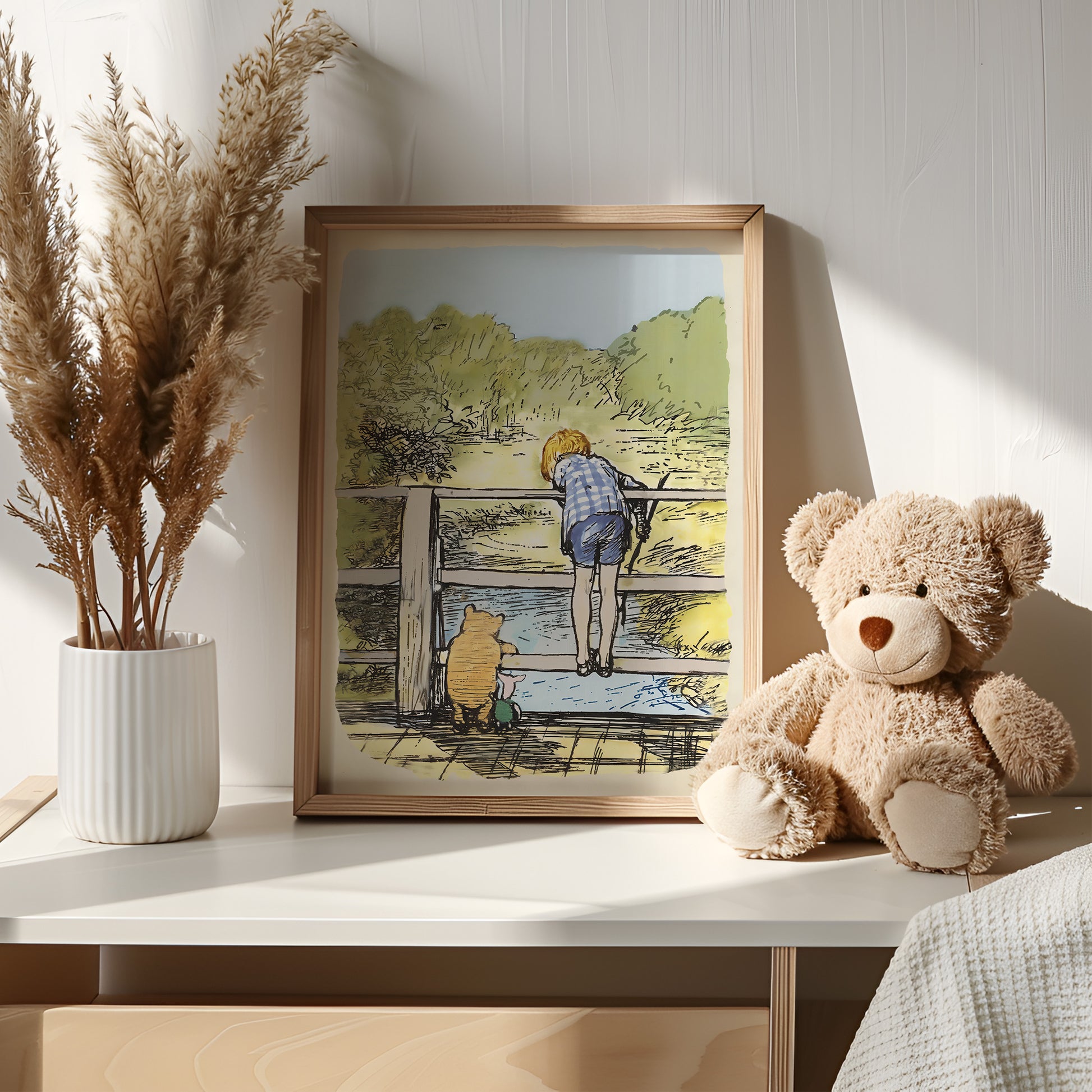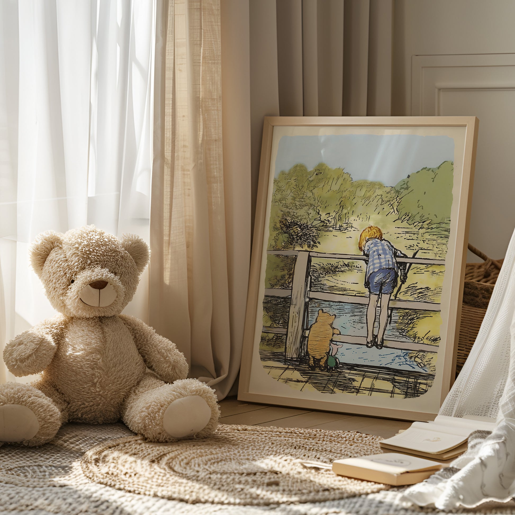 Retro Nalle Puh illustration för barnrummet.