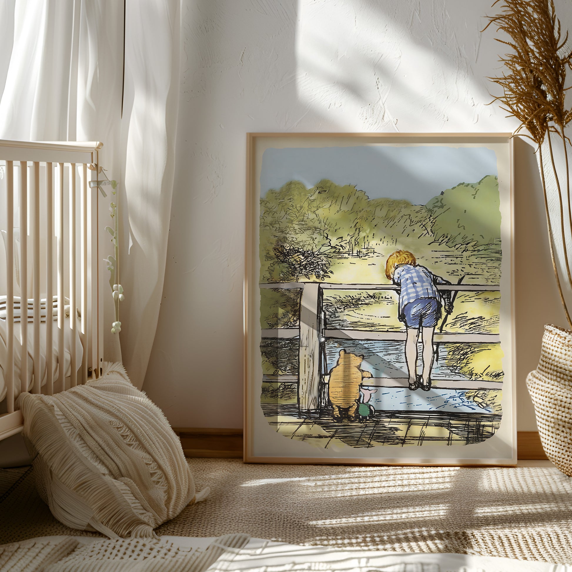 Vintage Nalle Puh illustration för barnrummet.