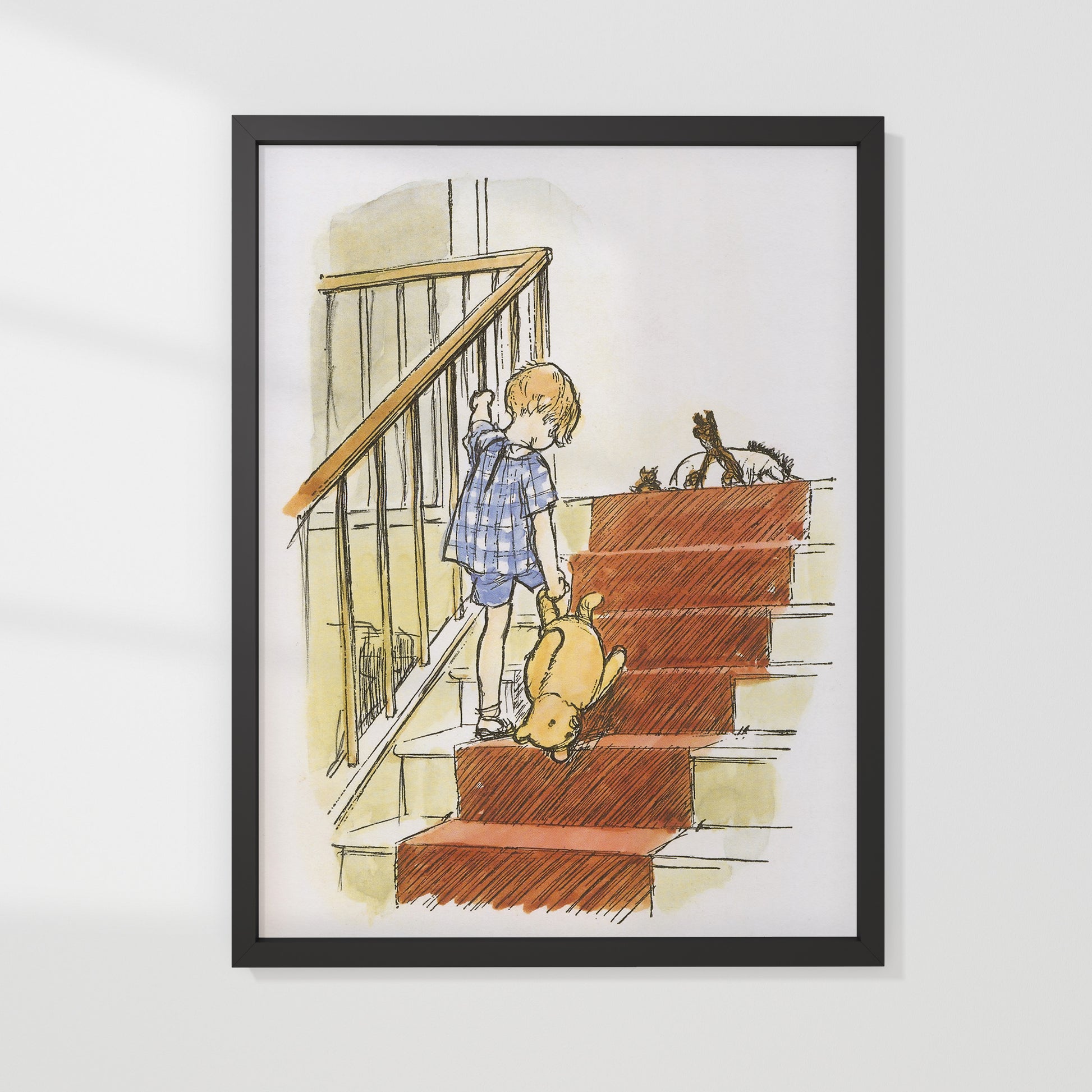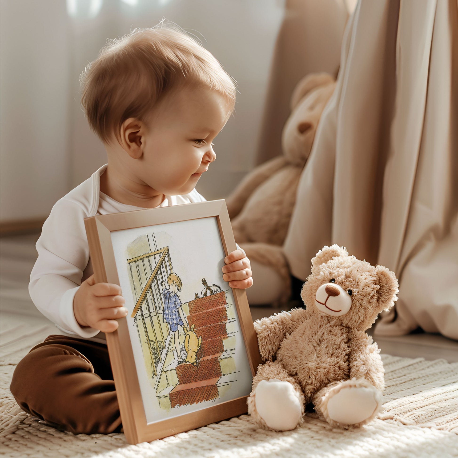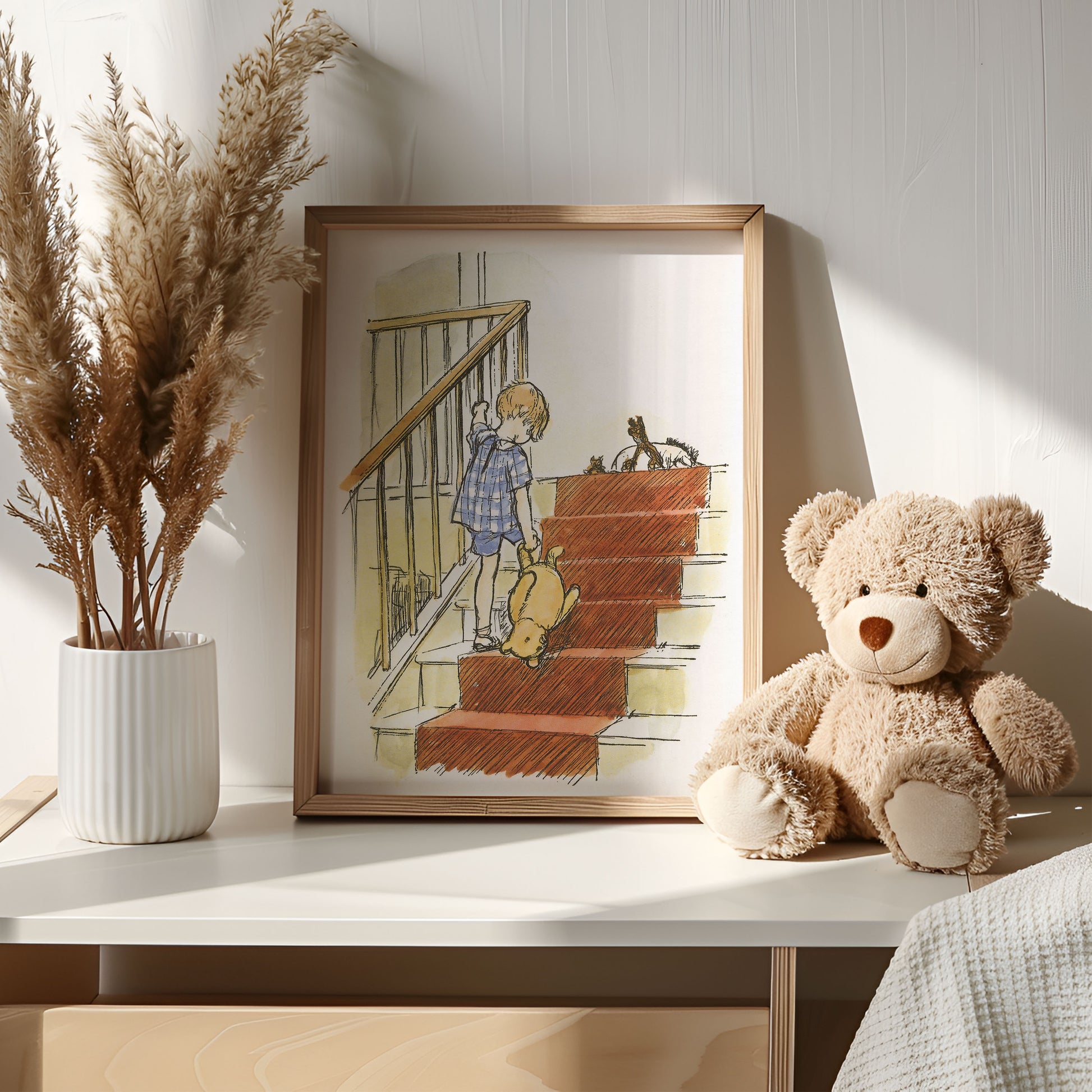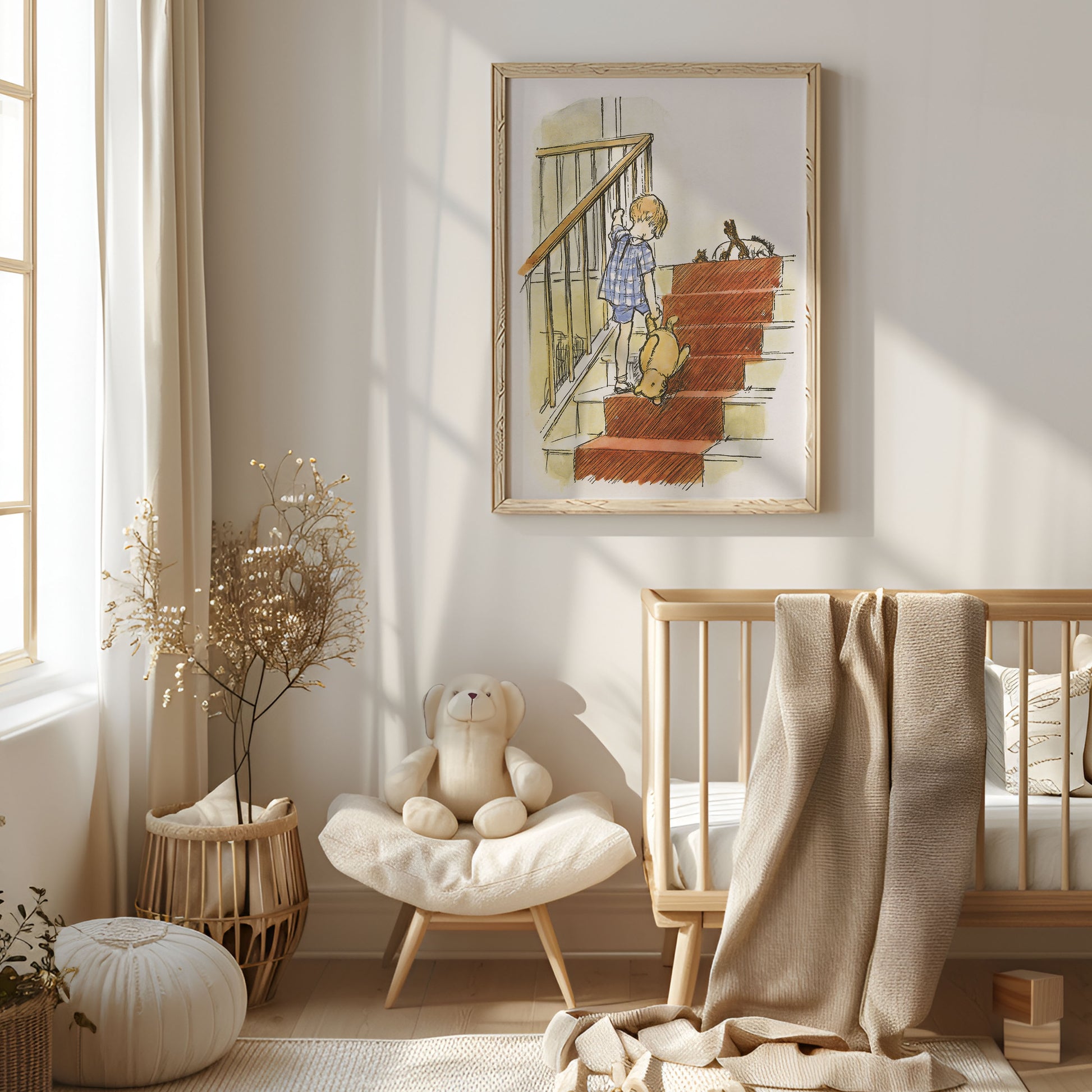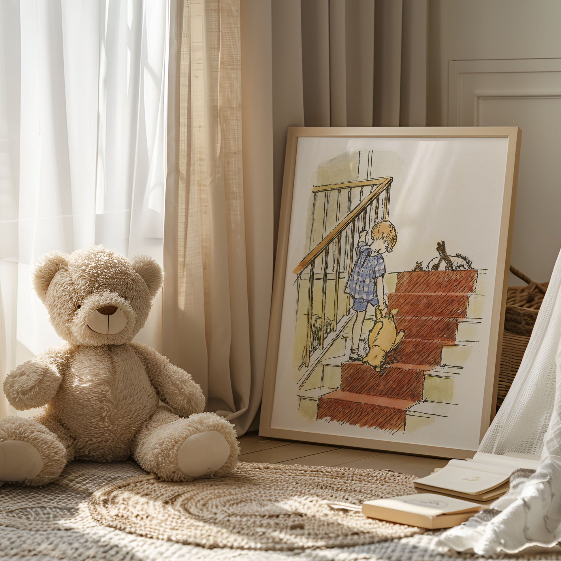 Vintage Nalle Puh, läggdags, illustration för barnrummet.