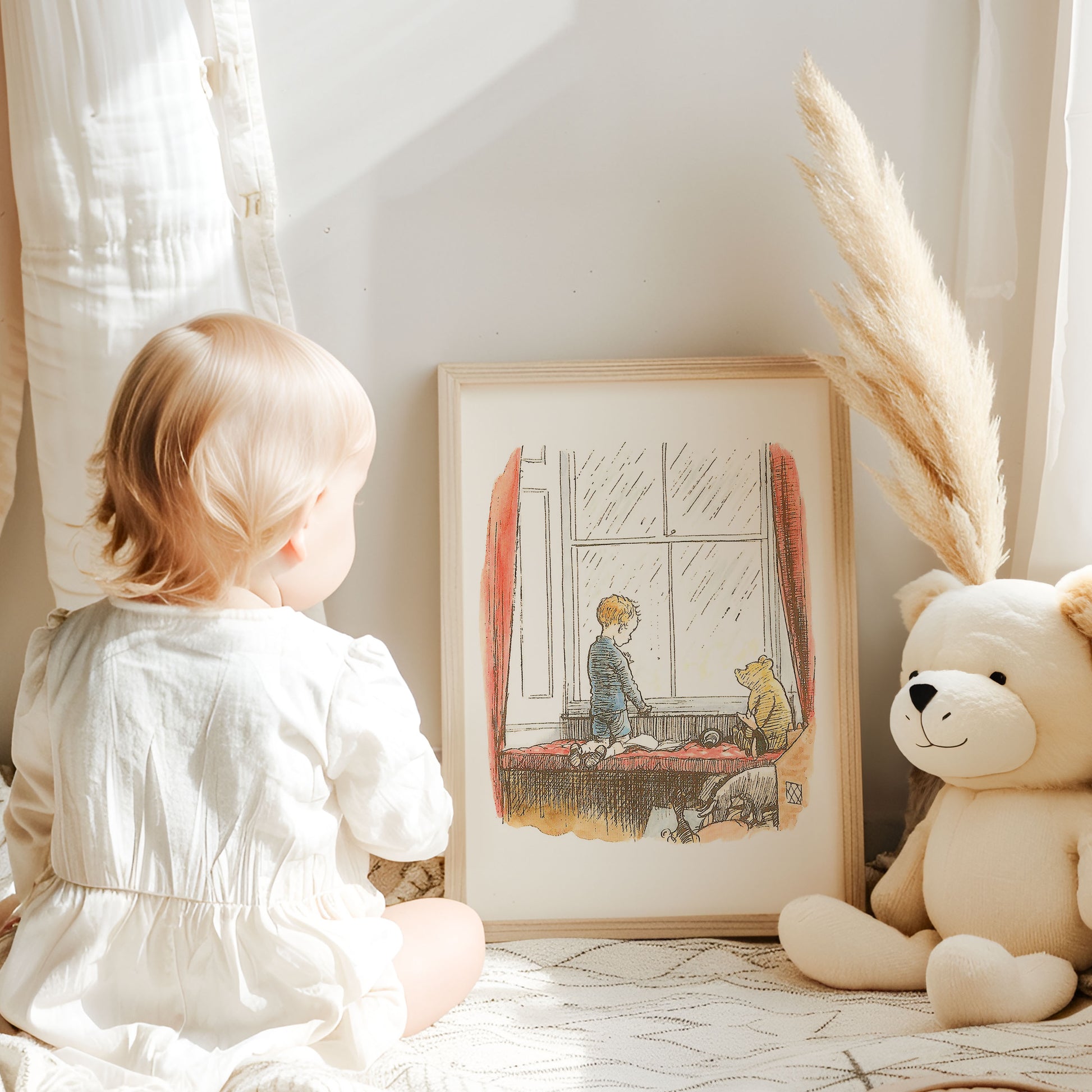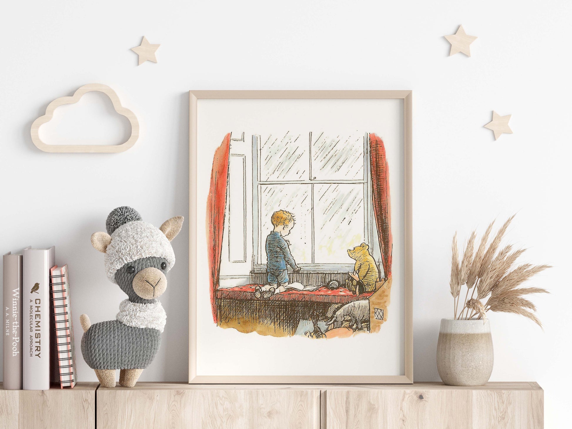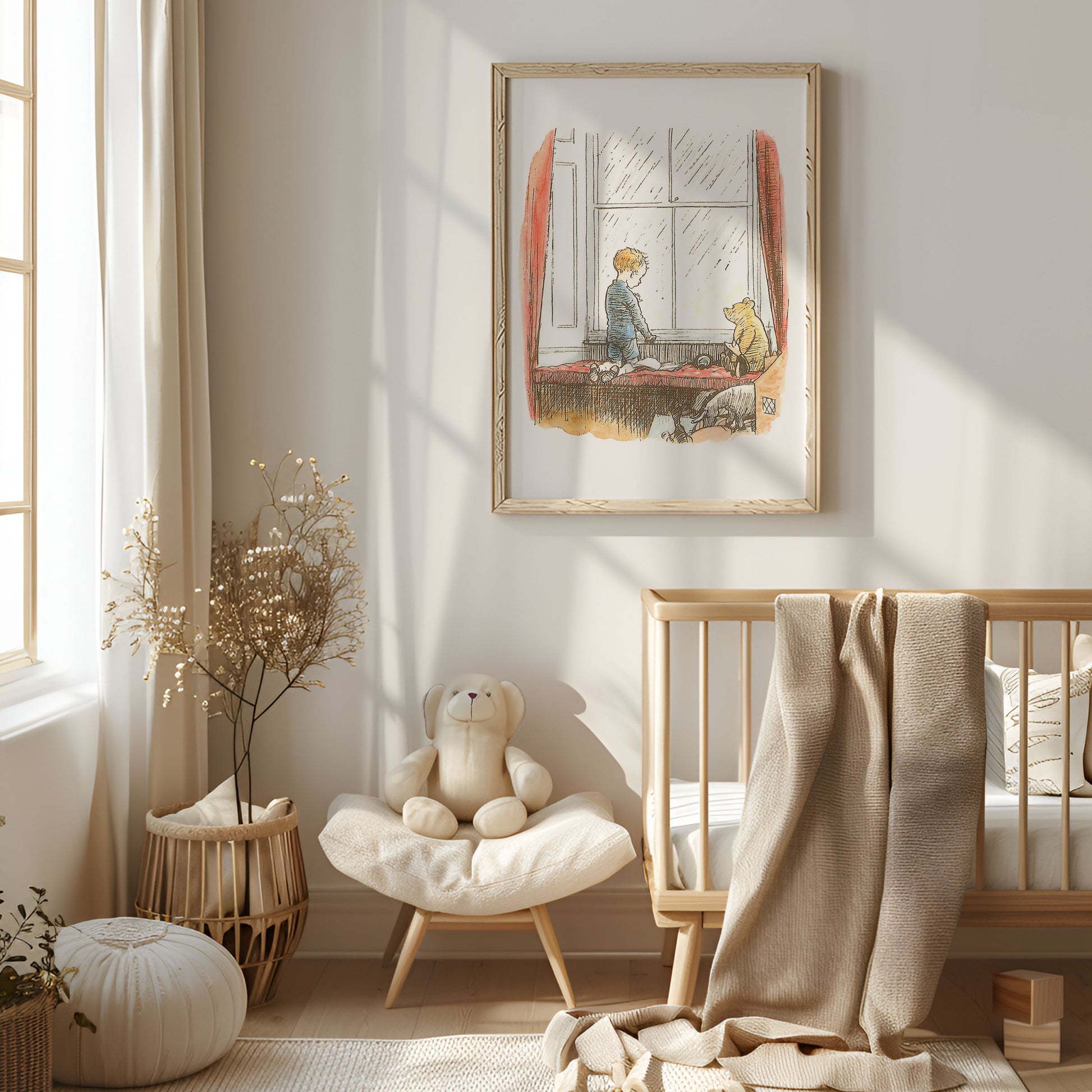 Retro Nalle Puh illustration för barnrummet. Väntan på bättre tider.