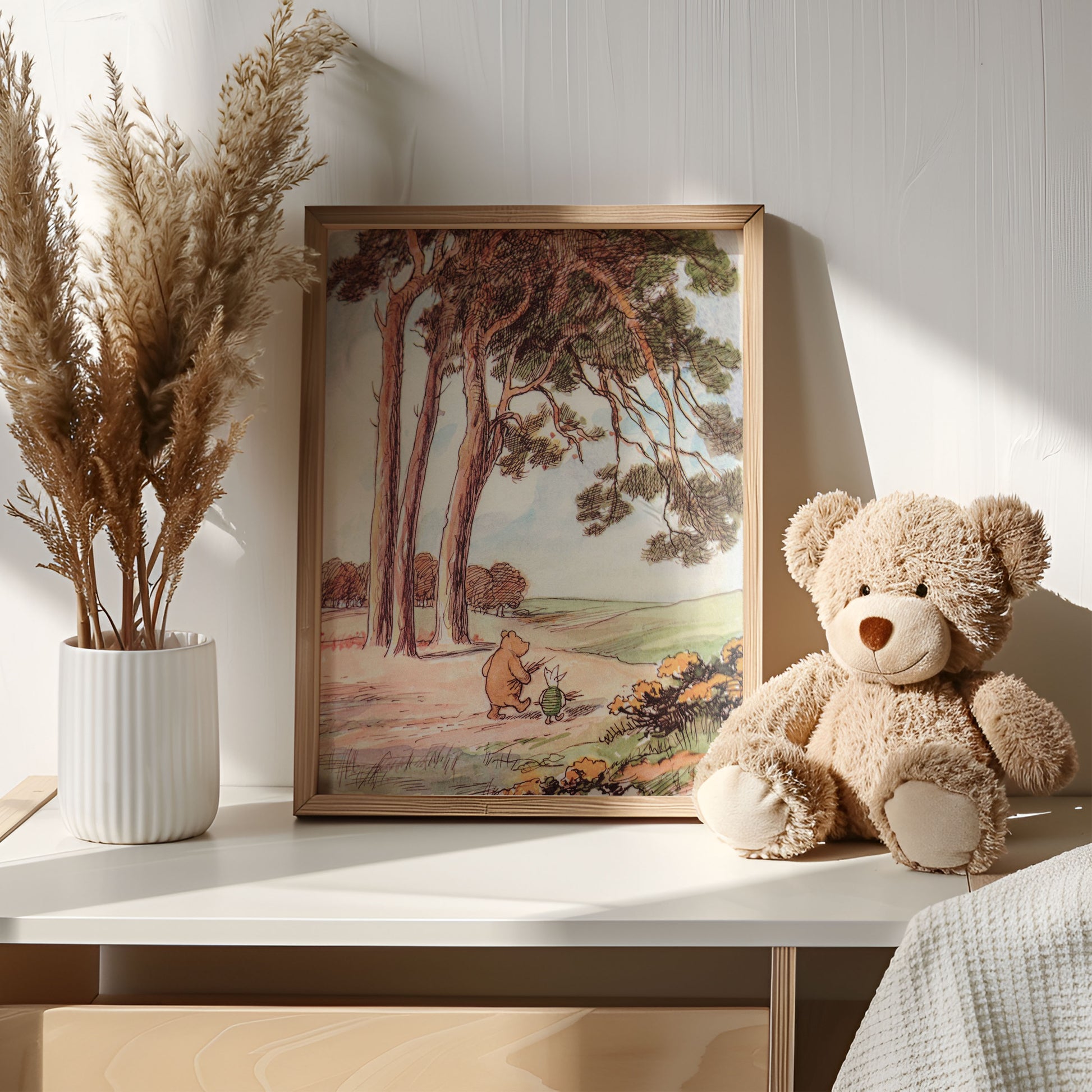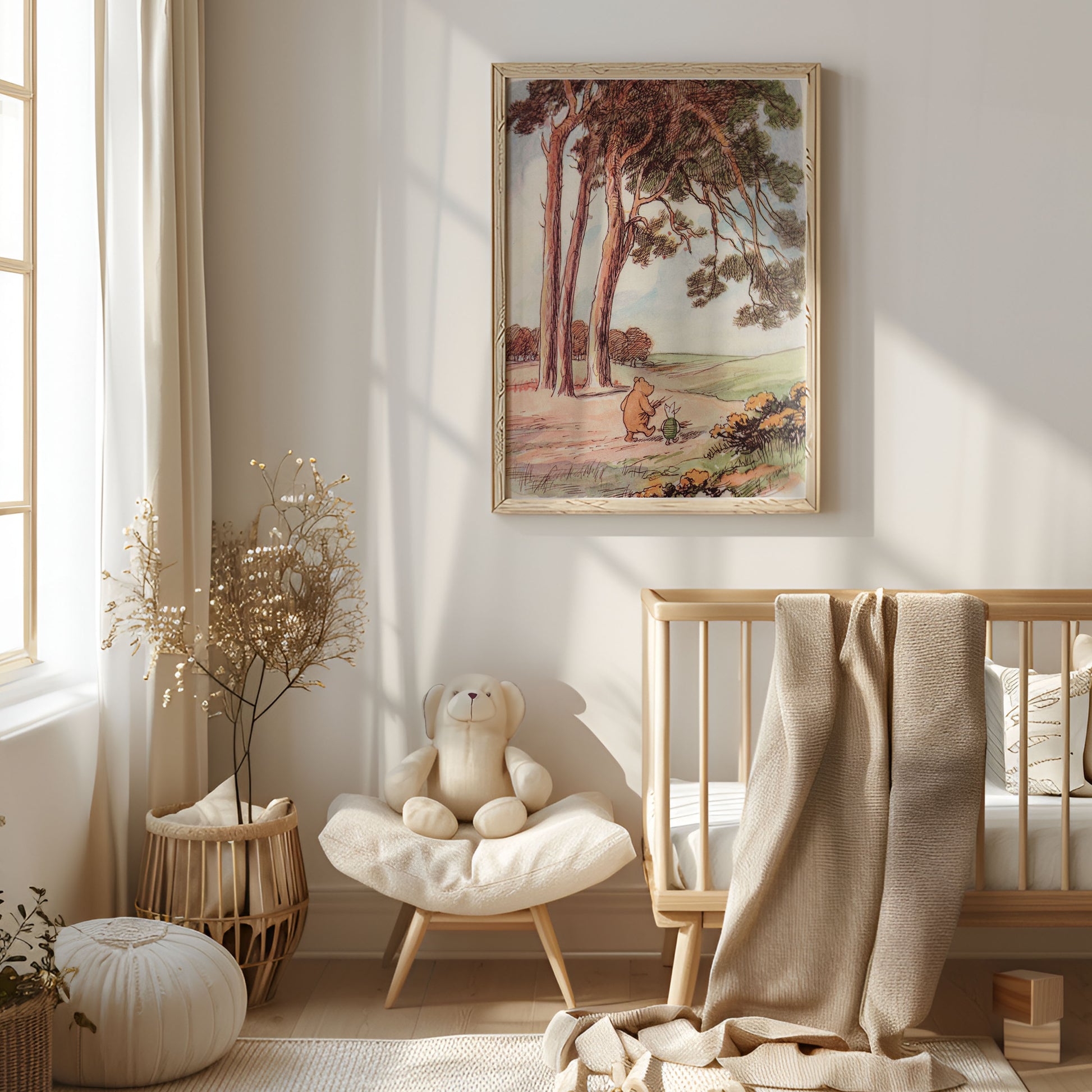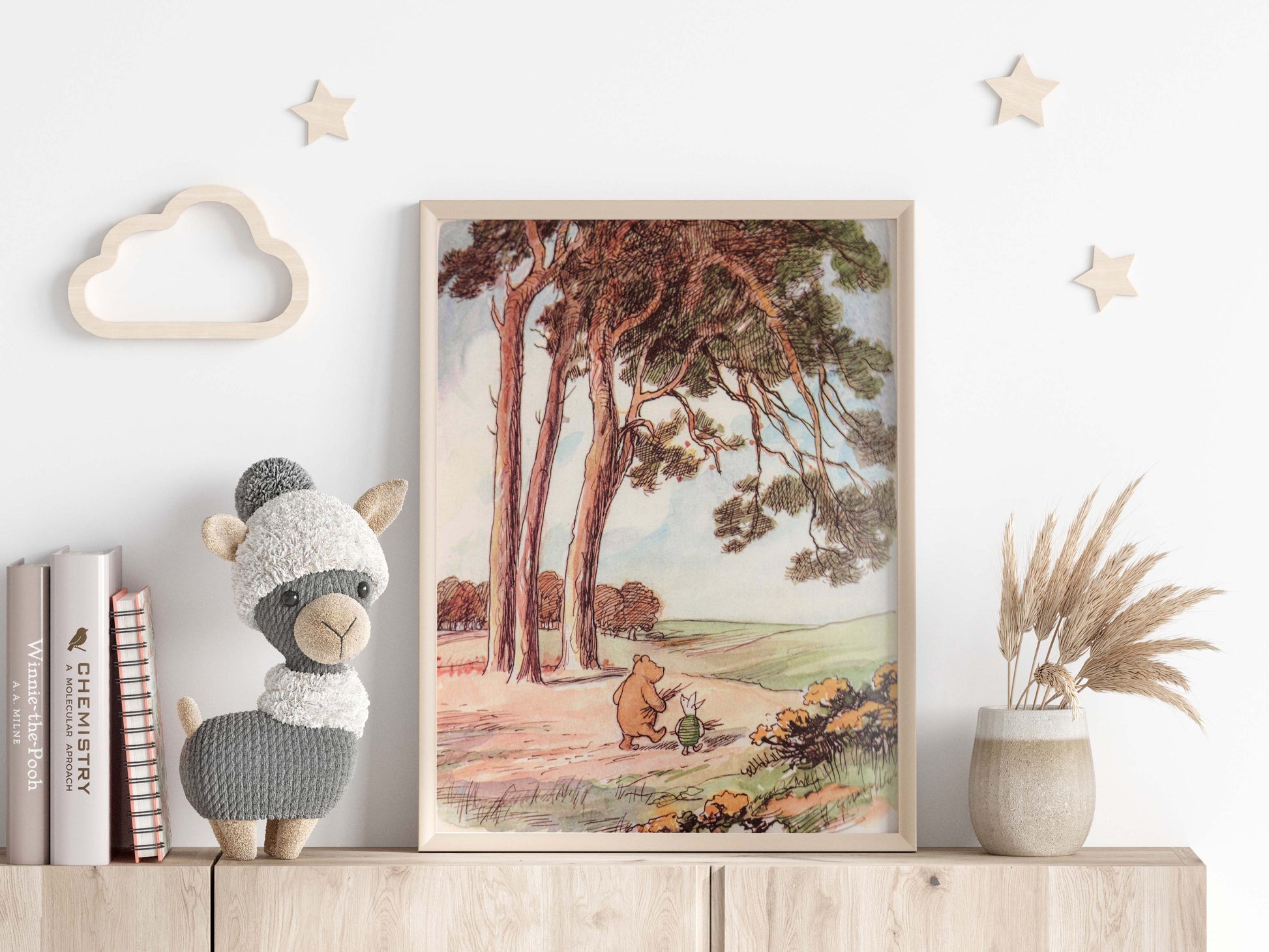 Retro Nalle Puh och Nasse illustration för barnrummet.