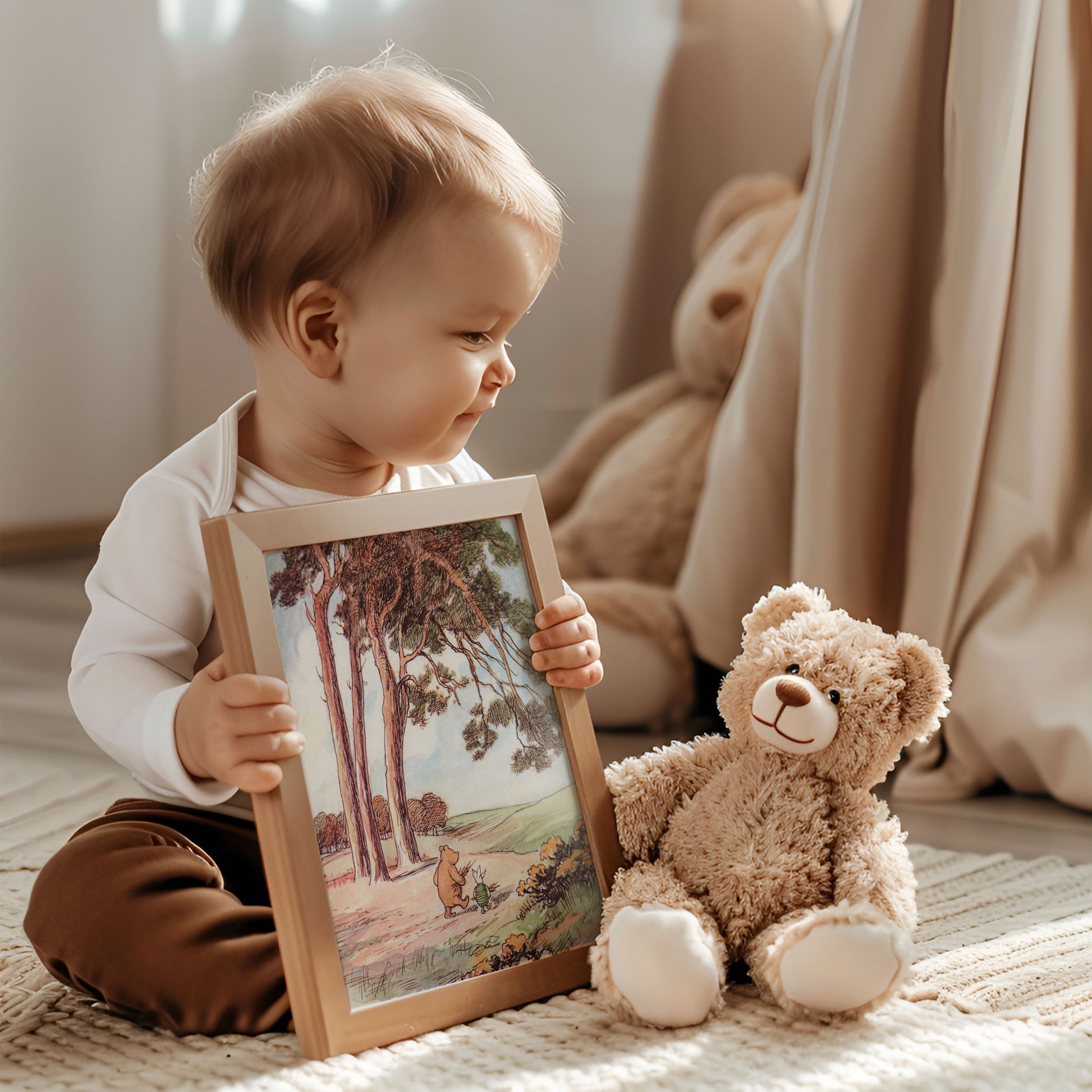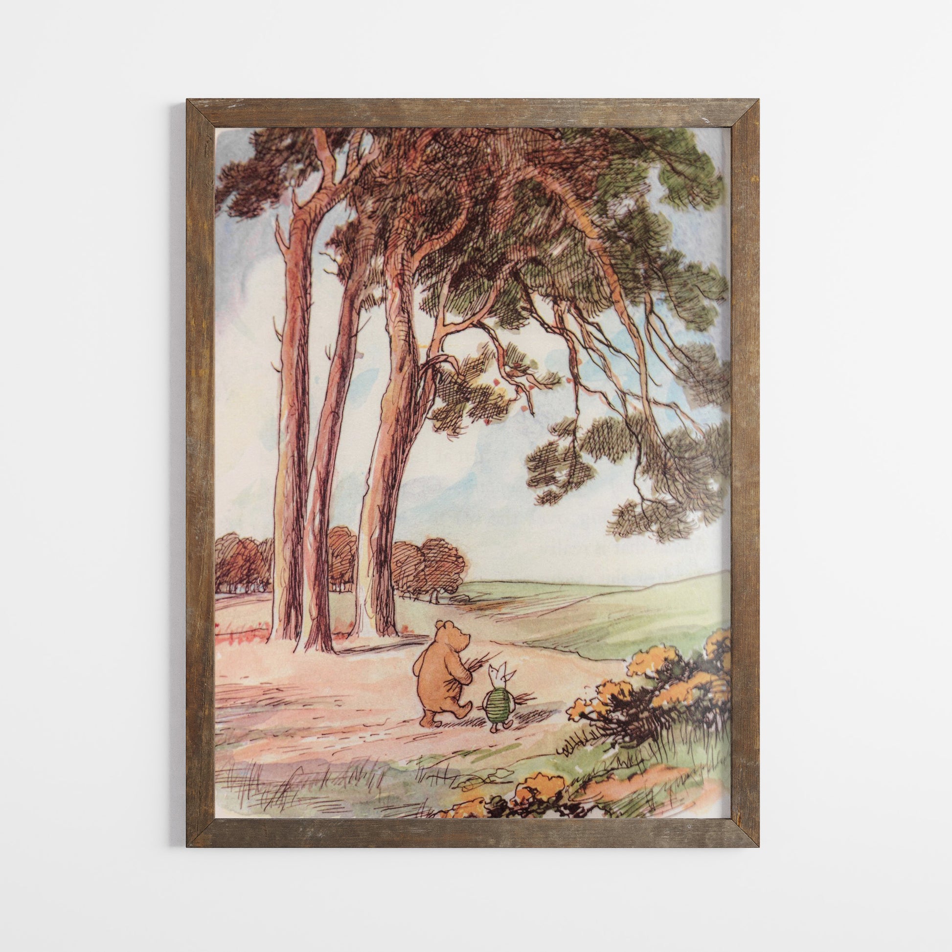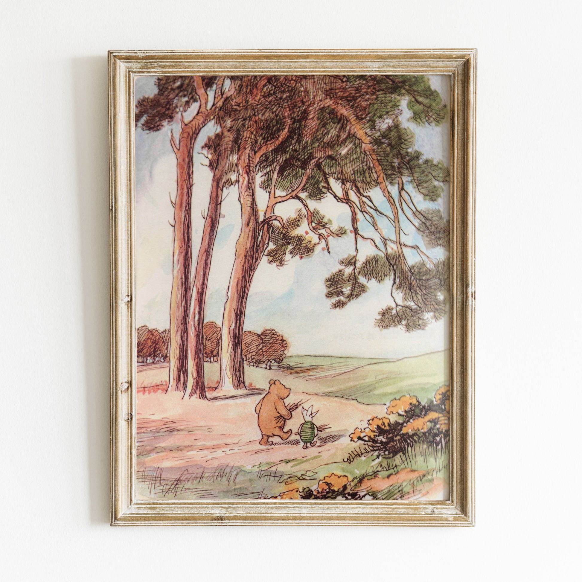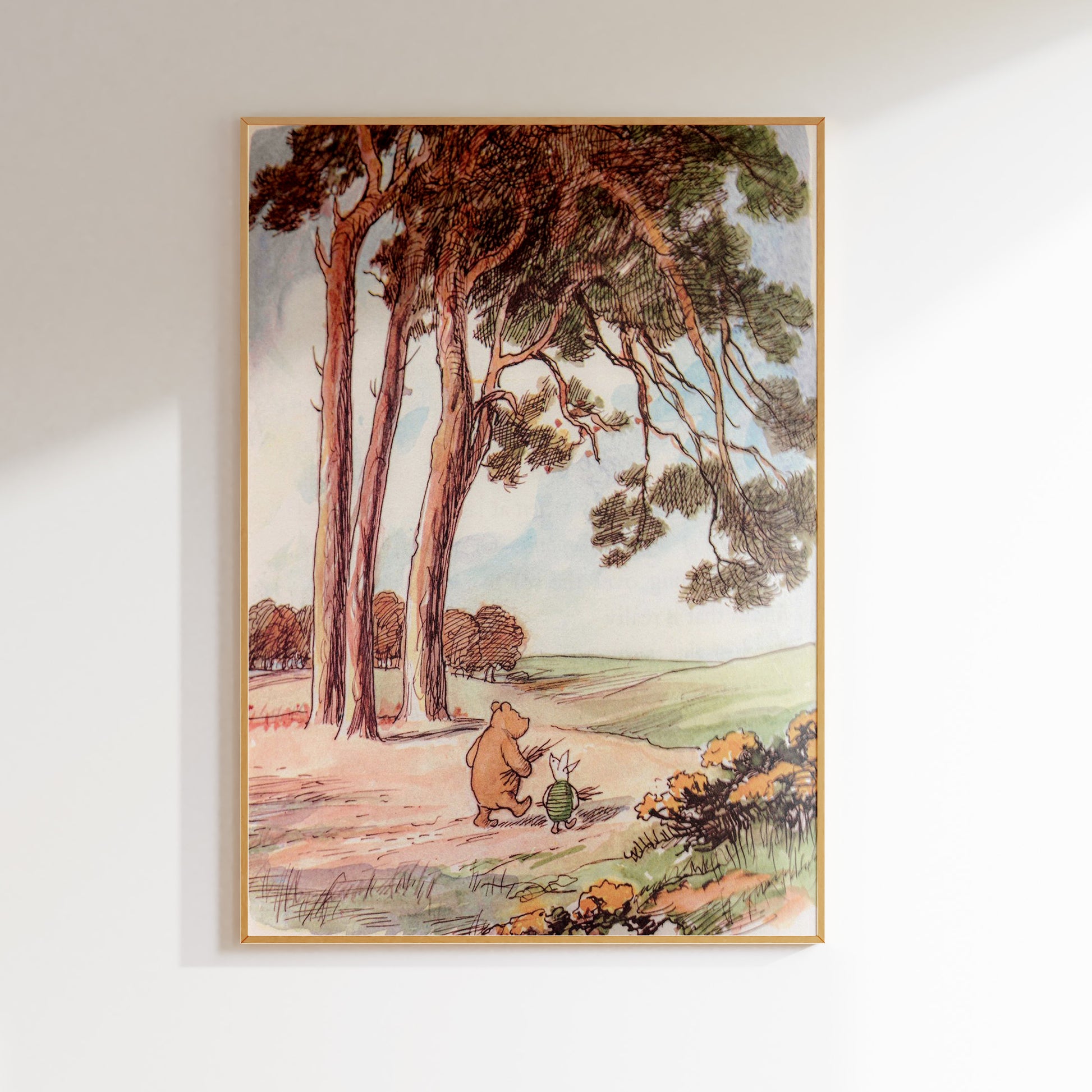 Retro Nalle Puh och Nasse illustration för barnrummet.