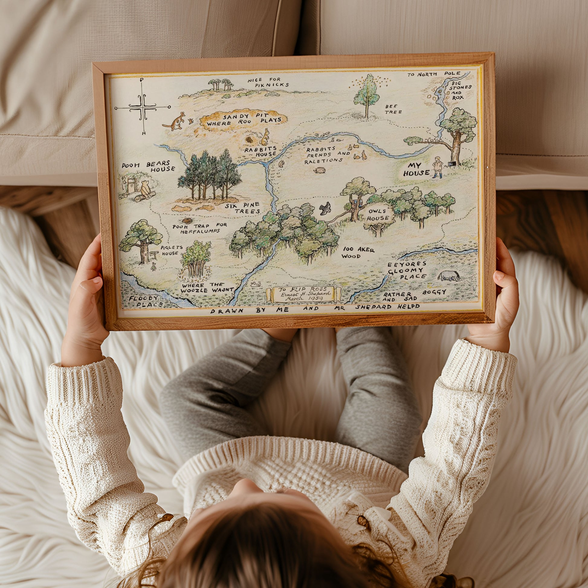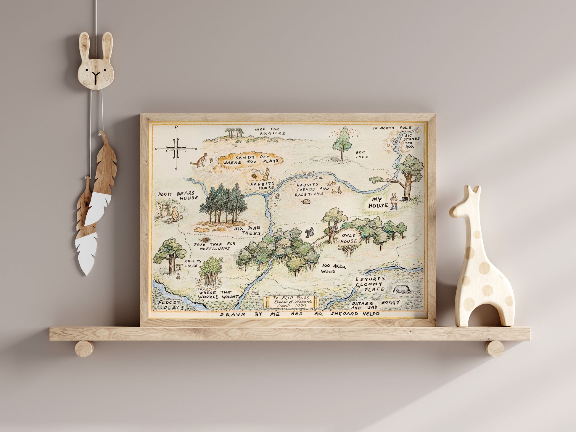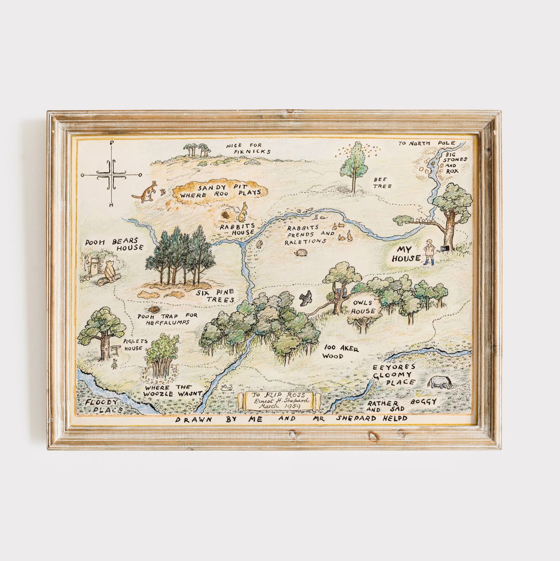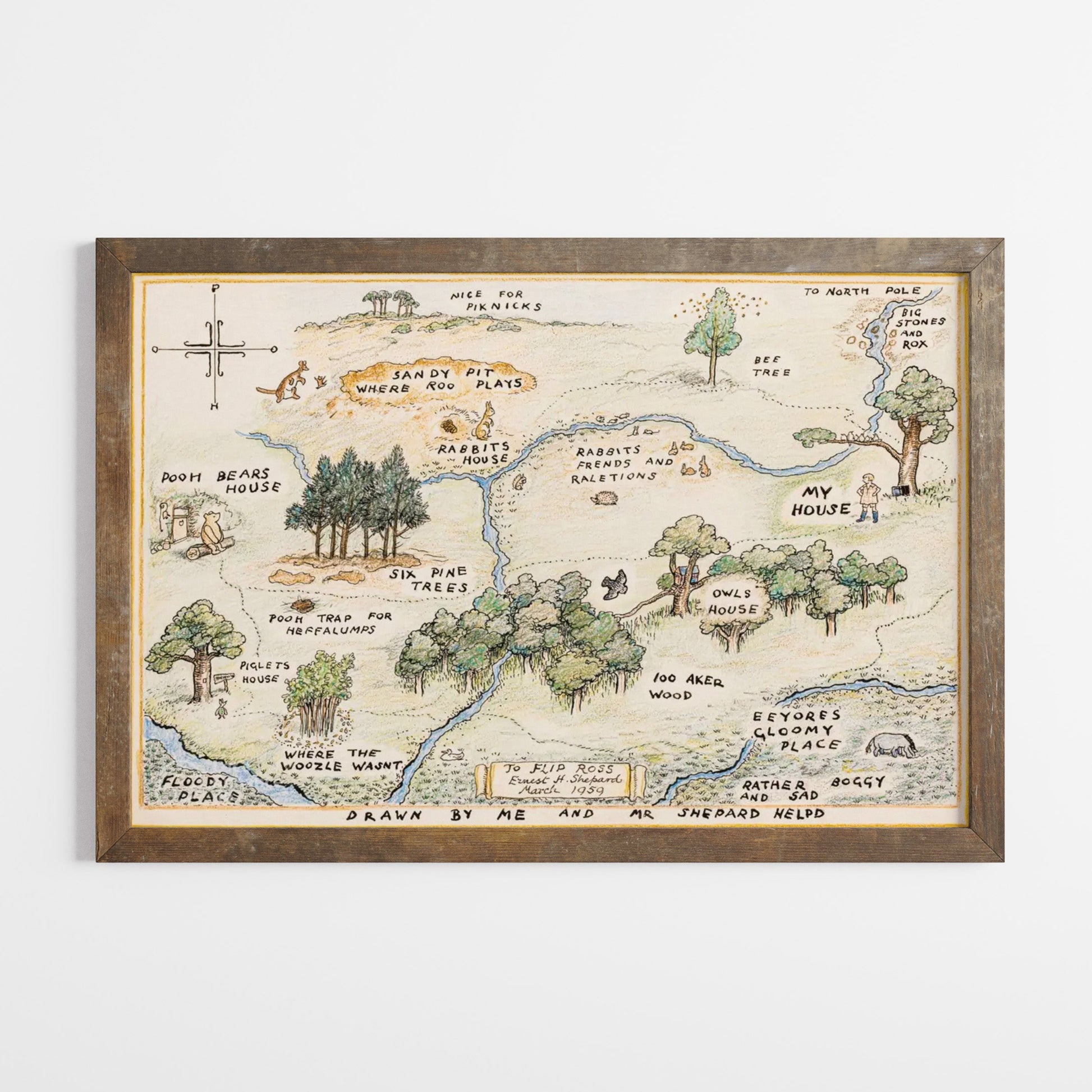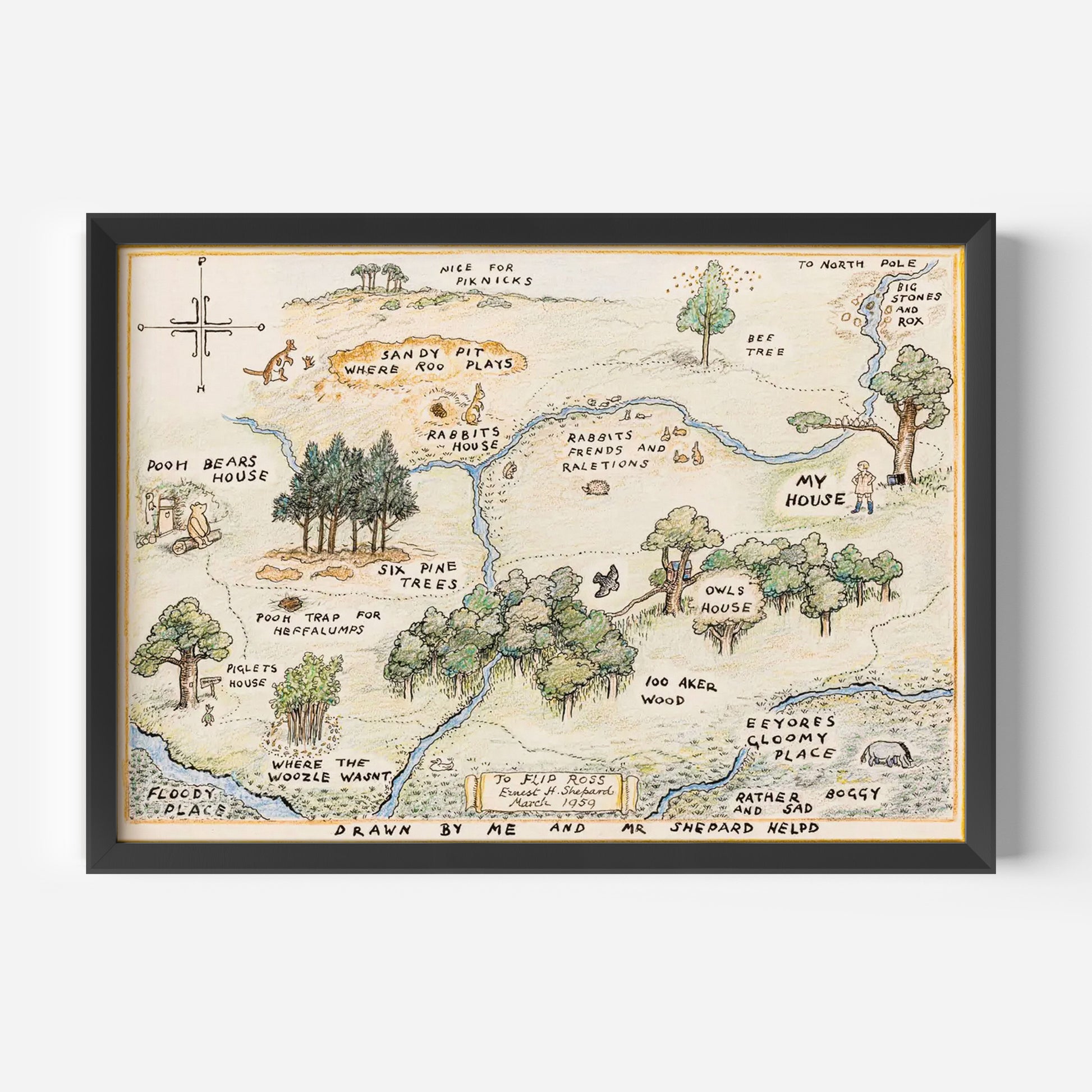 Retro Nalle Puh poster, karta över Nalle Puhs värld.
