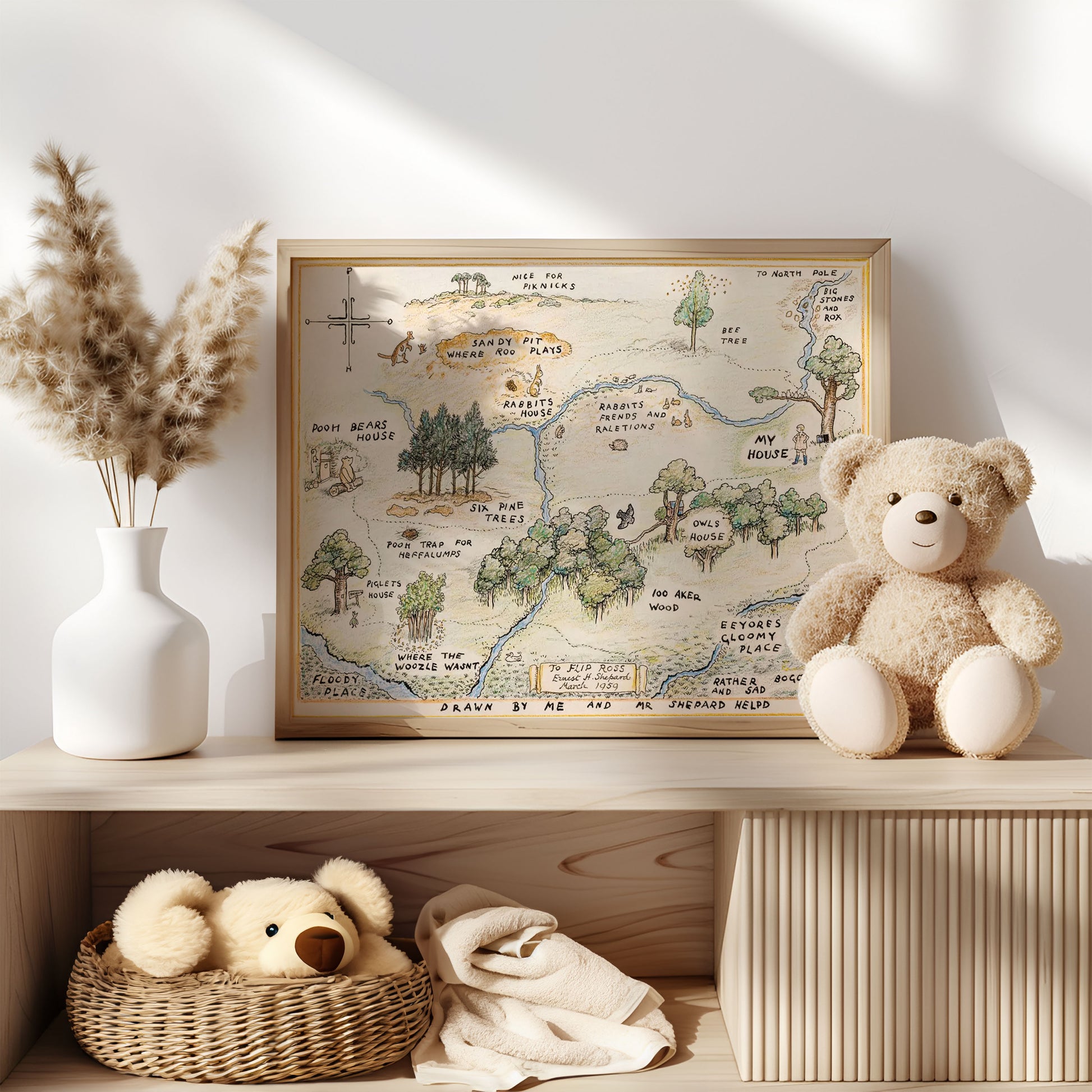 Vintage Nalle Puh Karta illustration för barnrummet.