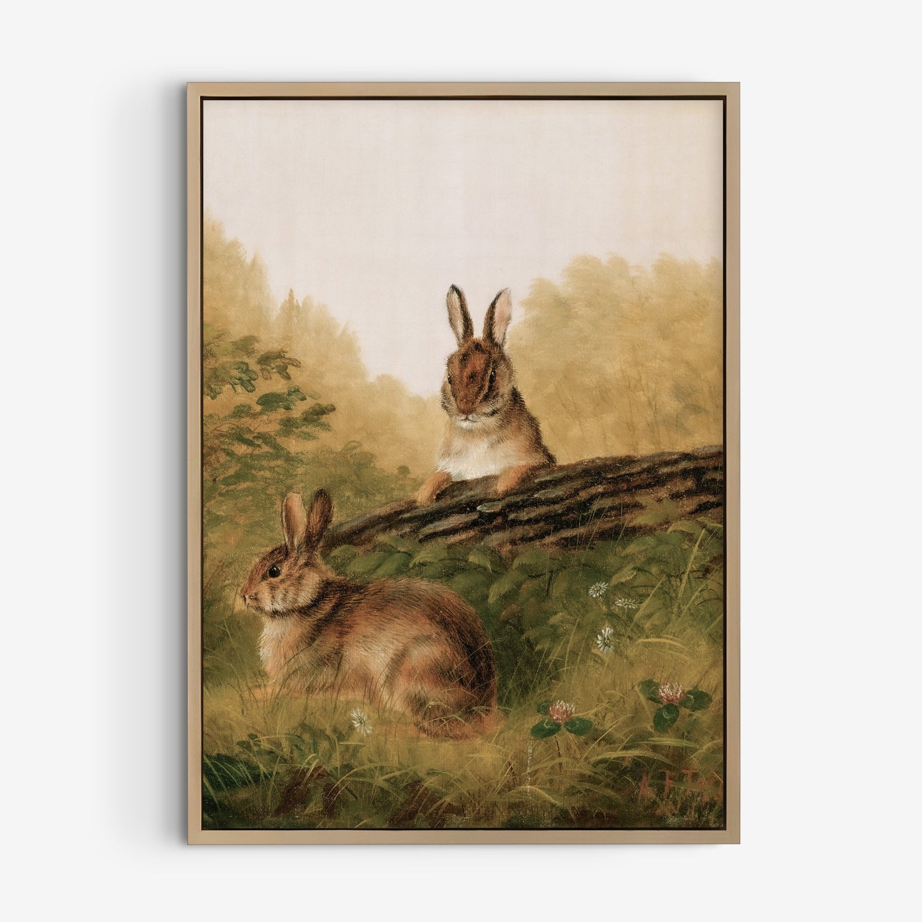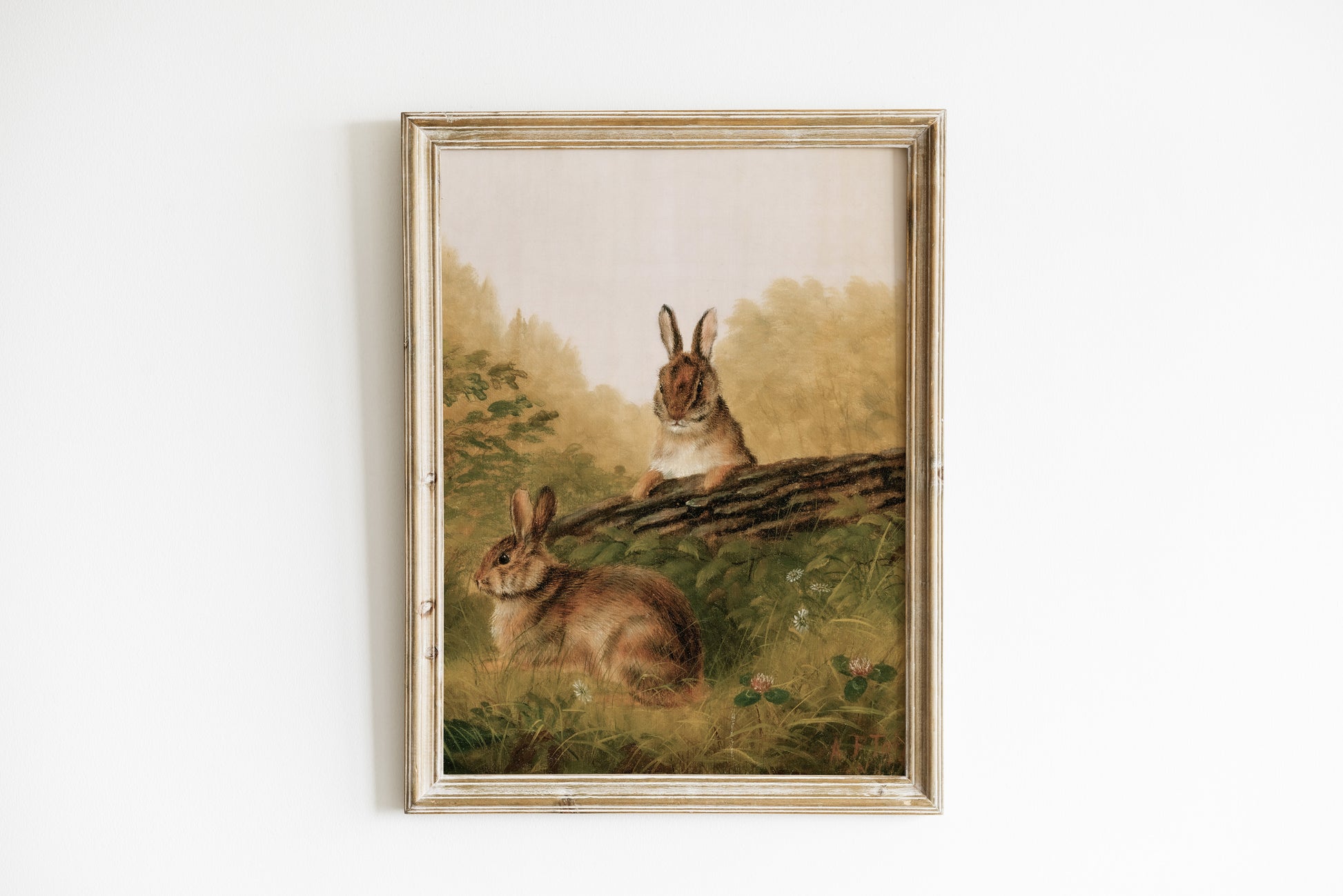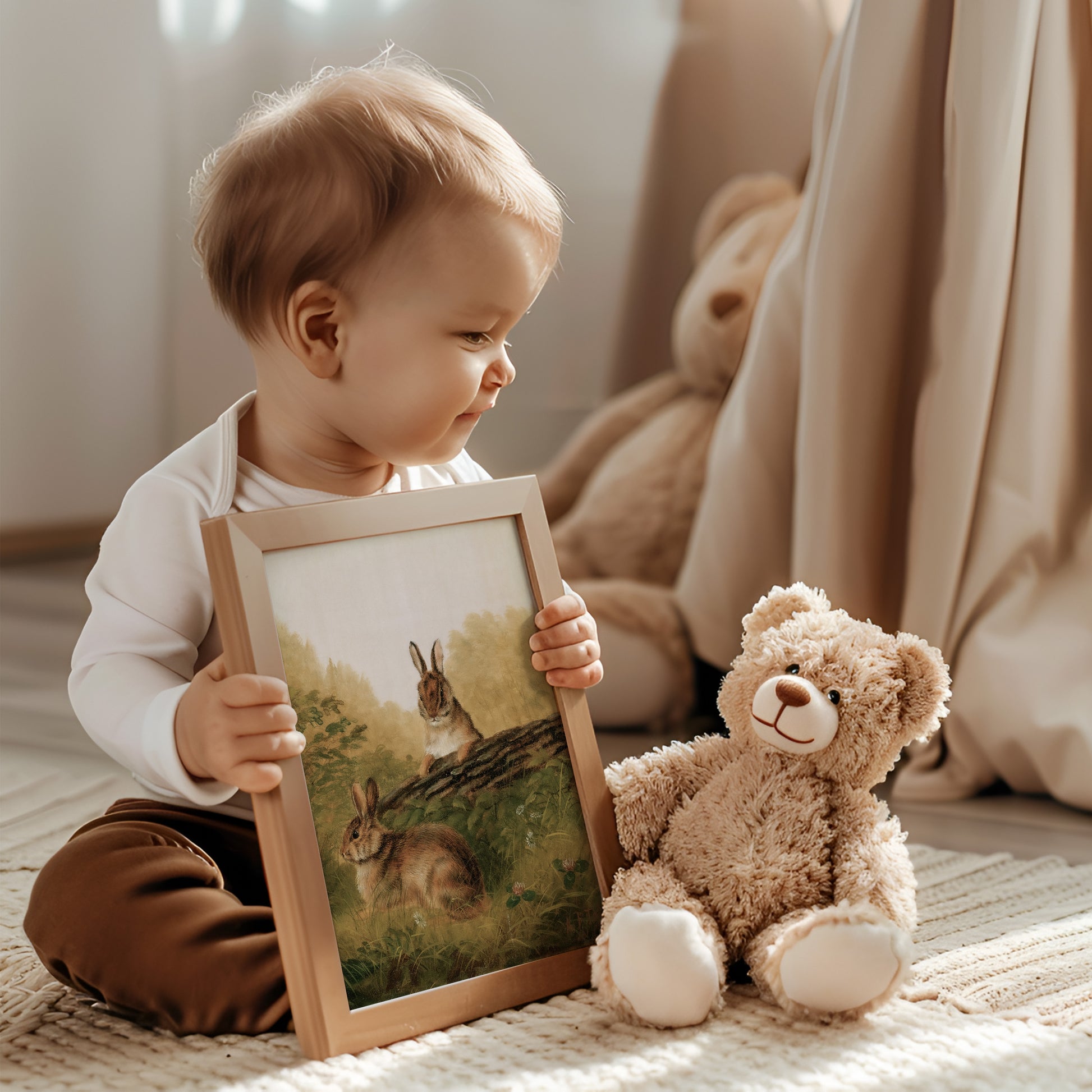 Retro oljemålning av gulliga kaniner för barnrummet.