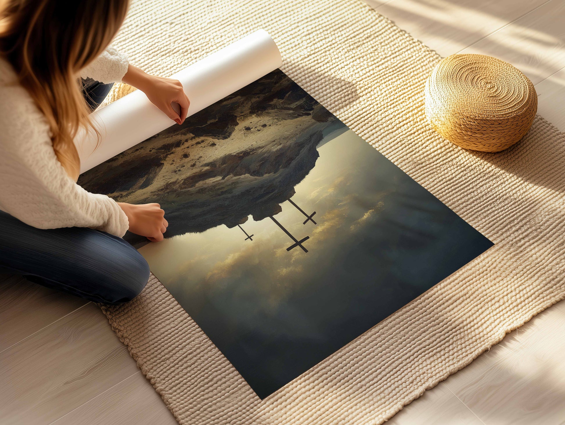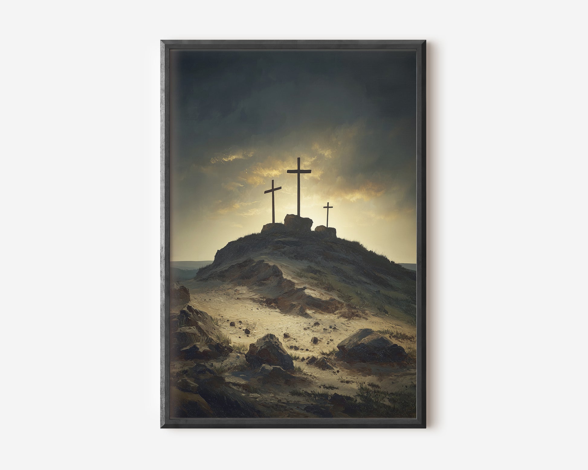 Kristen poster, korsen på Golgata, oljemålning.