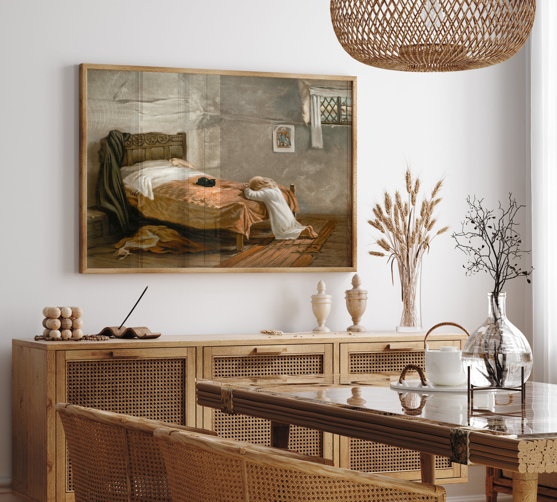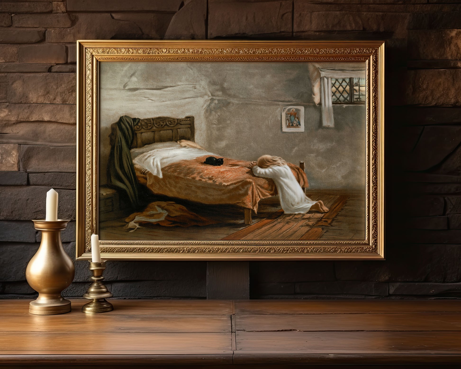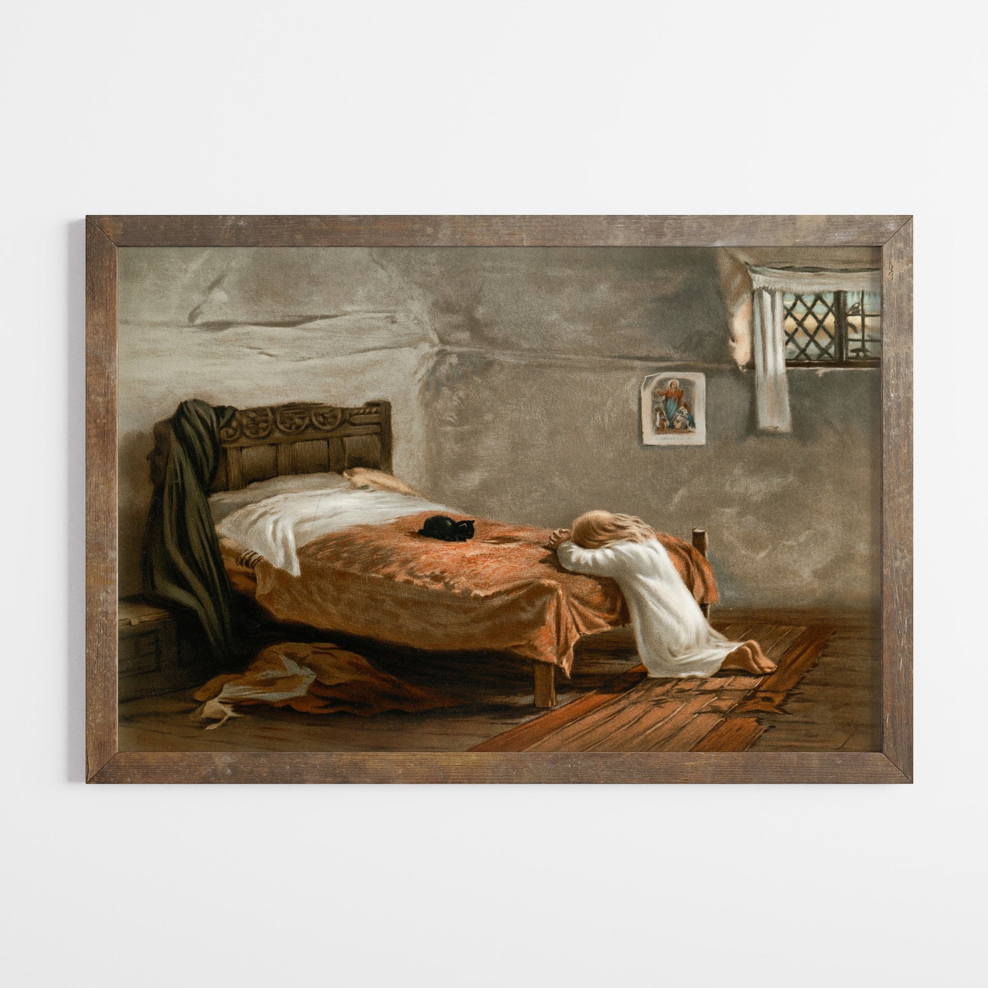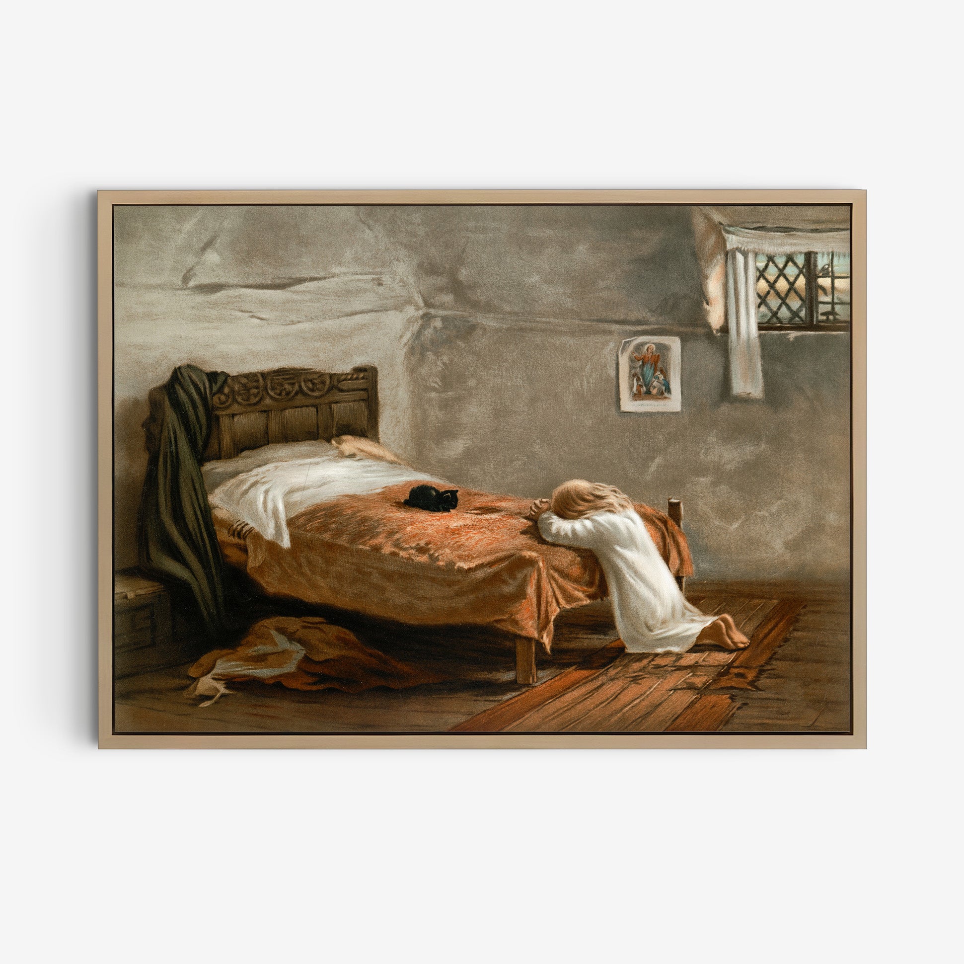 Vintage kristen poster, aftonbön, oljemålning.